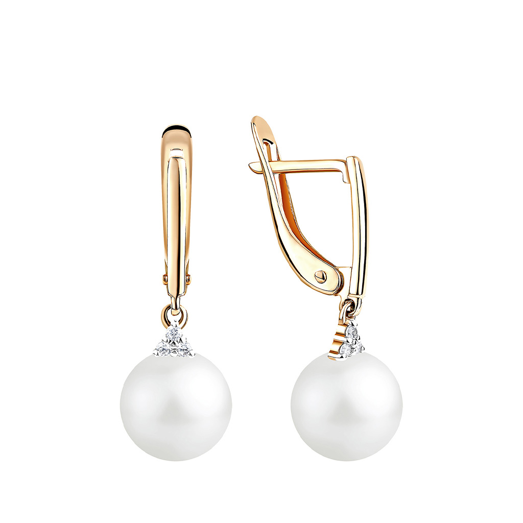 Серьги с английским замком из белого золота с бриллиантами, жемчугом