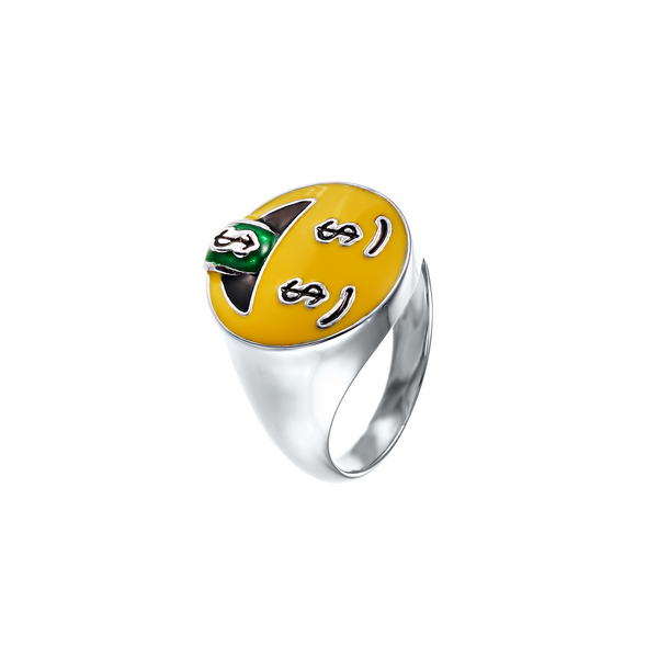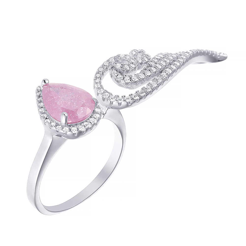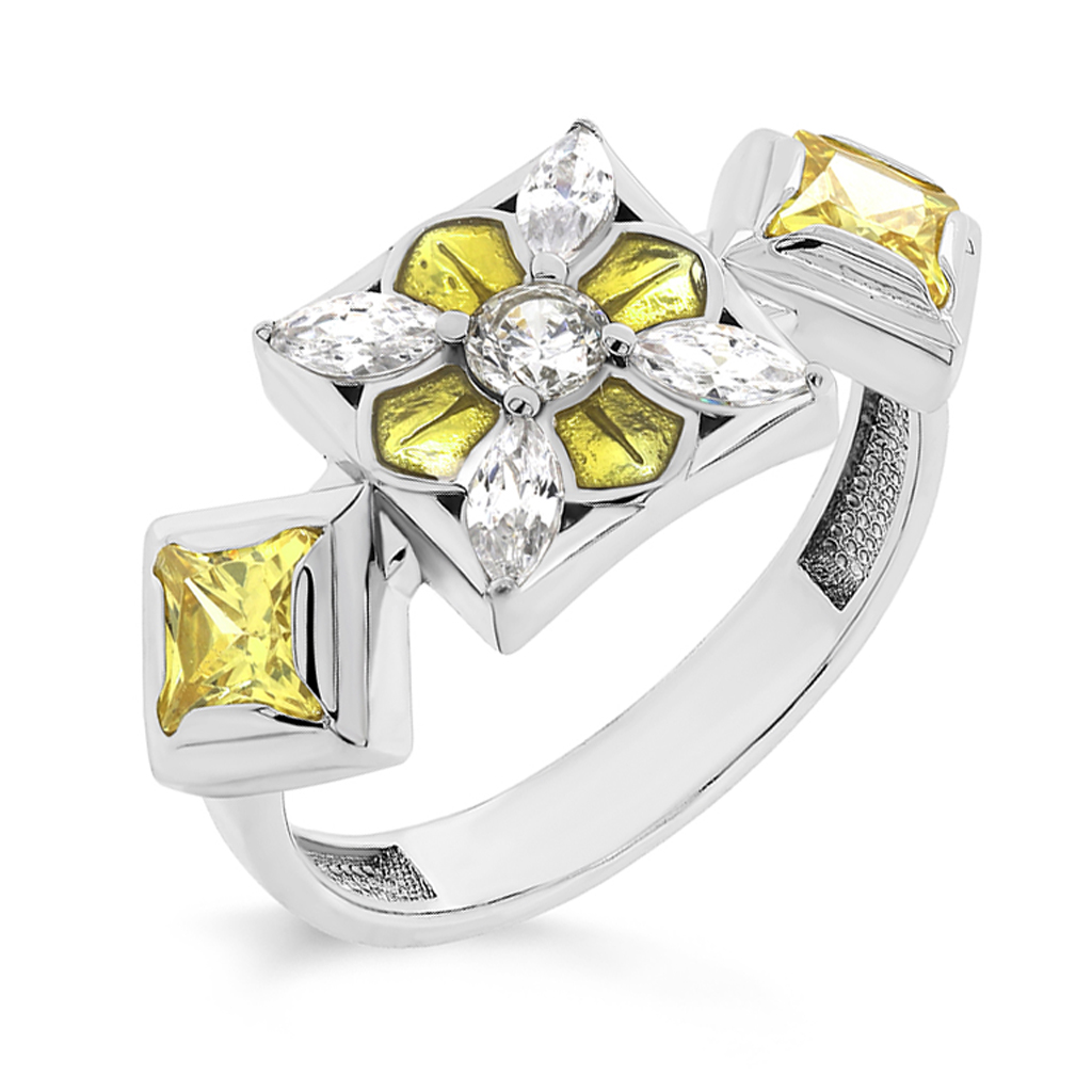 Кольцо из серебра с хризолитами и фианитами и эмалью