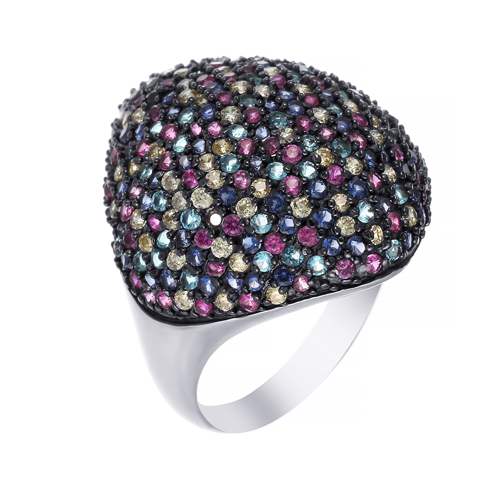 Кольцо из серебра с хризолитами и фианитами и эмалью
