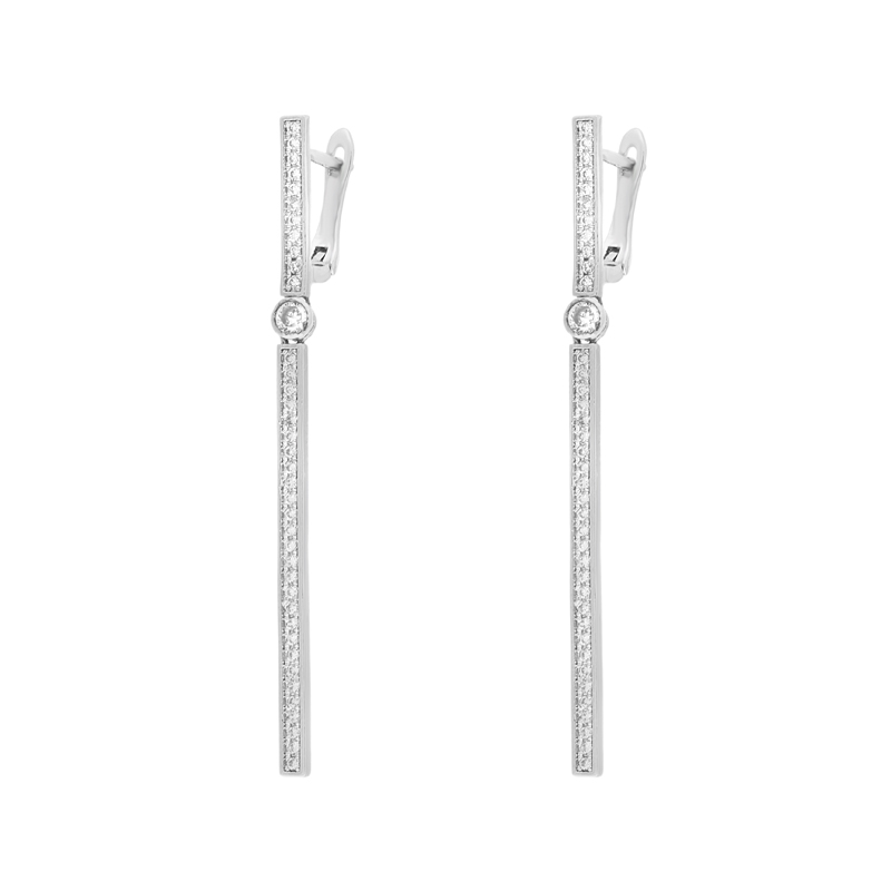 Серьги с английским замком из серебра с фианитами, шпинелями