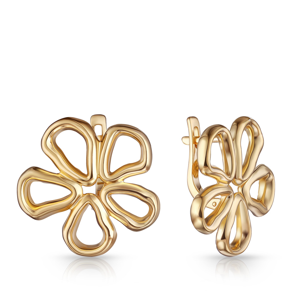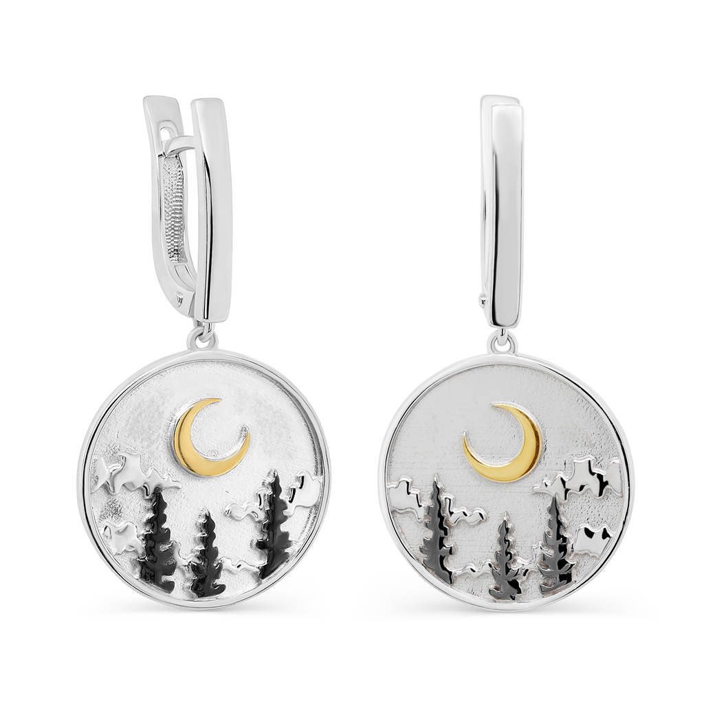Серьги с английским замком из серебра с керамикой, фианитом, золочением
