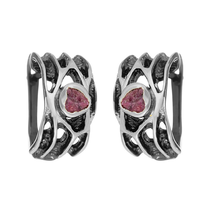 Серьги с английским замком из серебра с шпинелями, фианитами