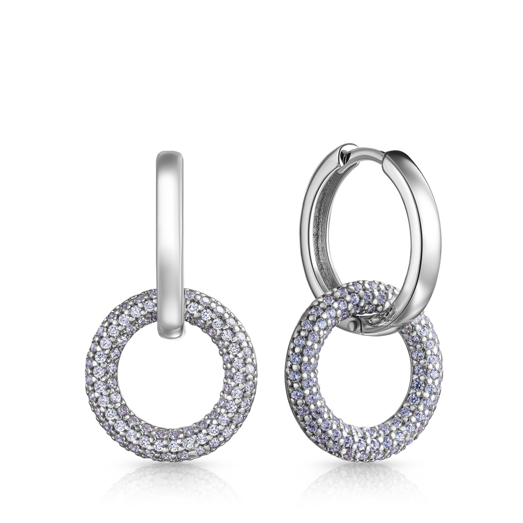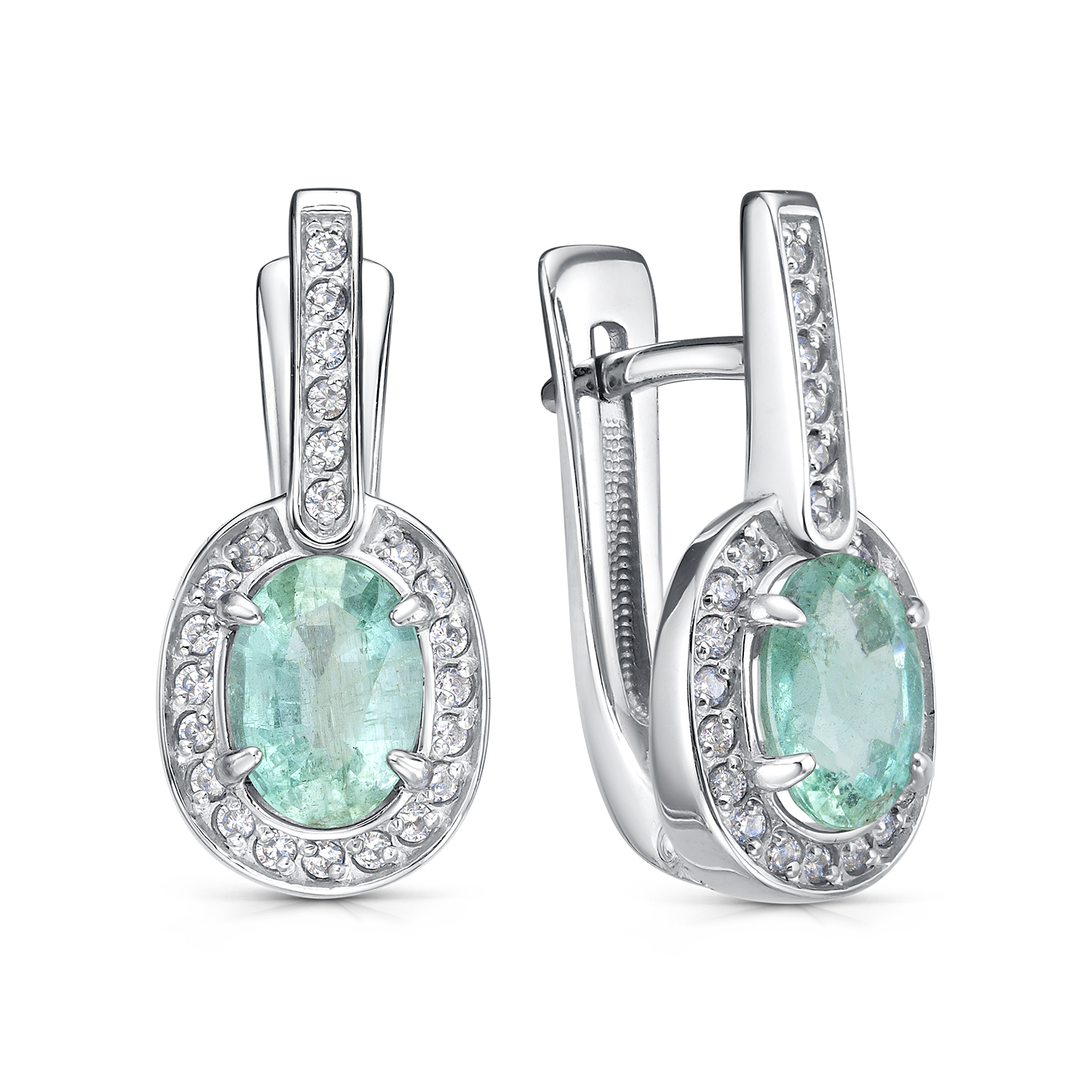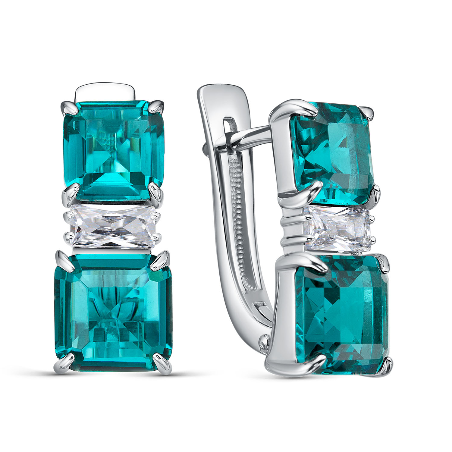 Серьги с английским замком из серебра с керамиками, кварцами и циркониями