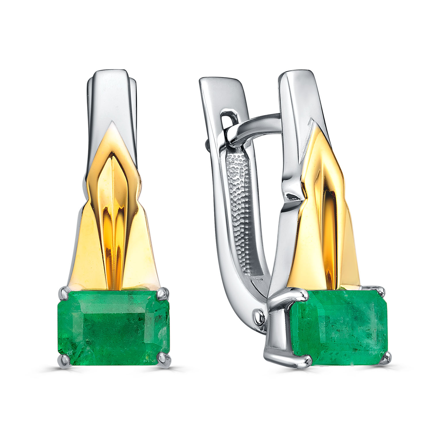Серьги с английским замком из желтого золота с изумрудами