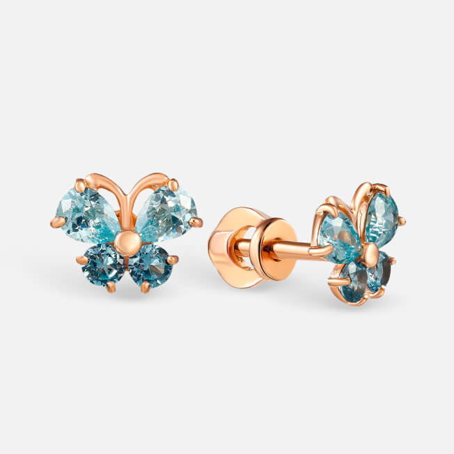Пусеты из желтого золота с кварцем