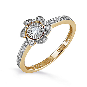 Кольцо из желтого золота с бриллиантами, жемчугом