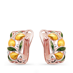 Пусеты детские из красного золота с эмалью