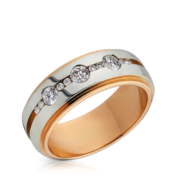 Кольцо обручальное из комбинированного золота с бриллиантами