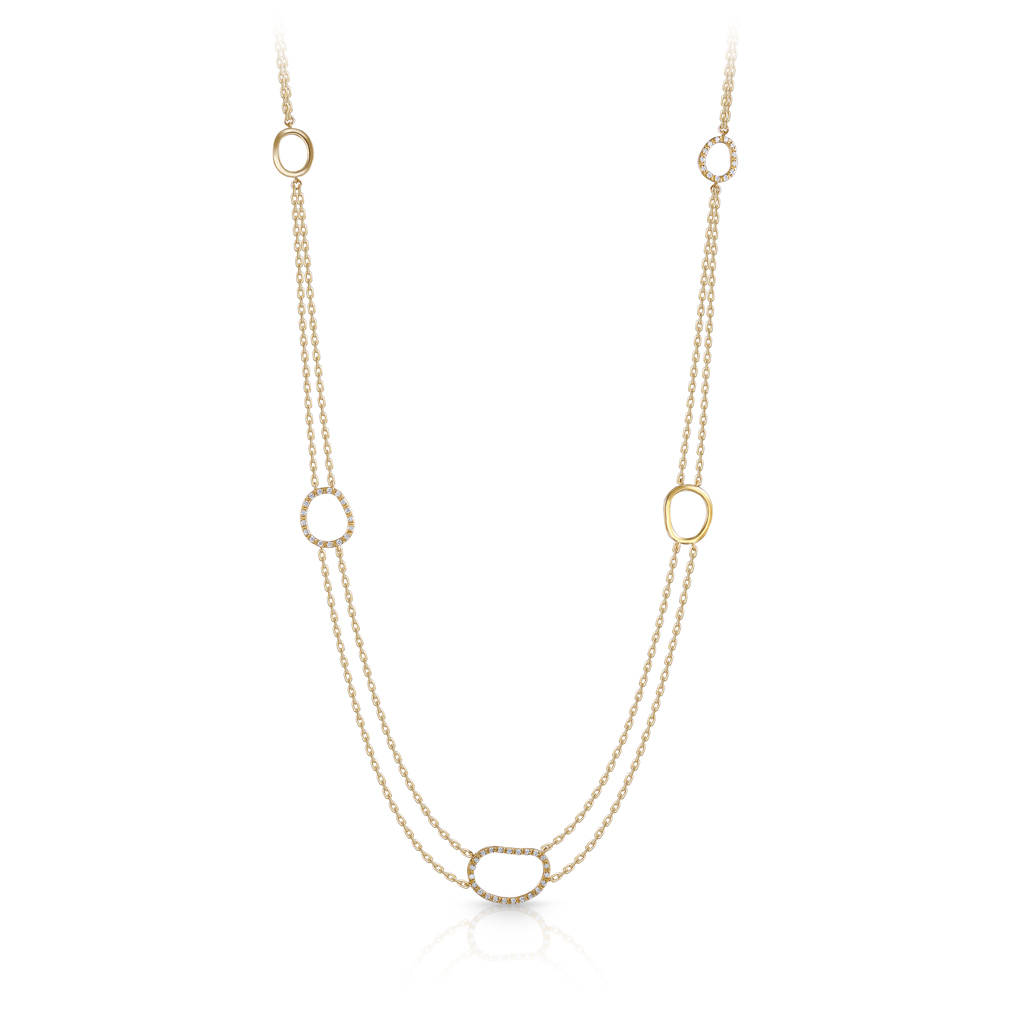 Колье из белого золота с бриллиантами, сапфиром, плетение якорное