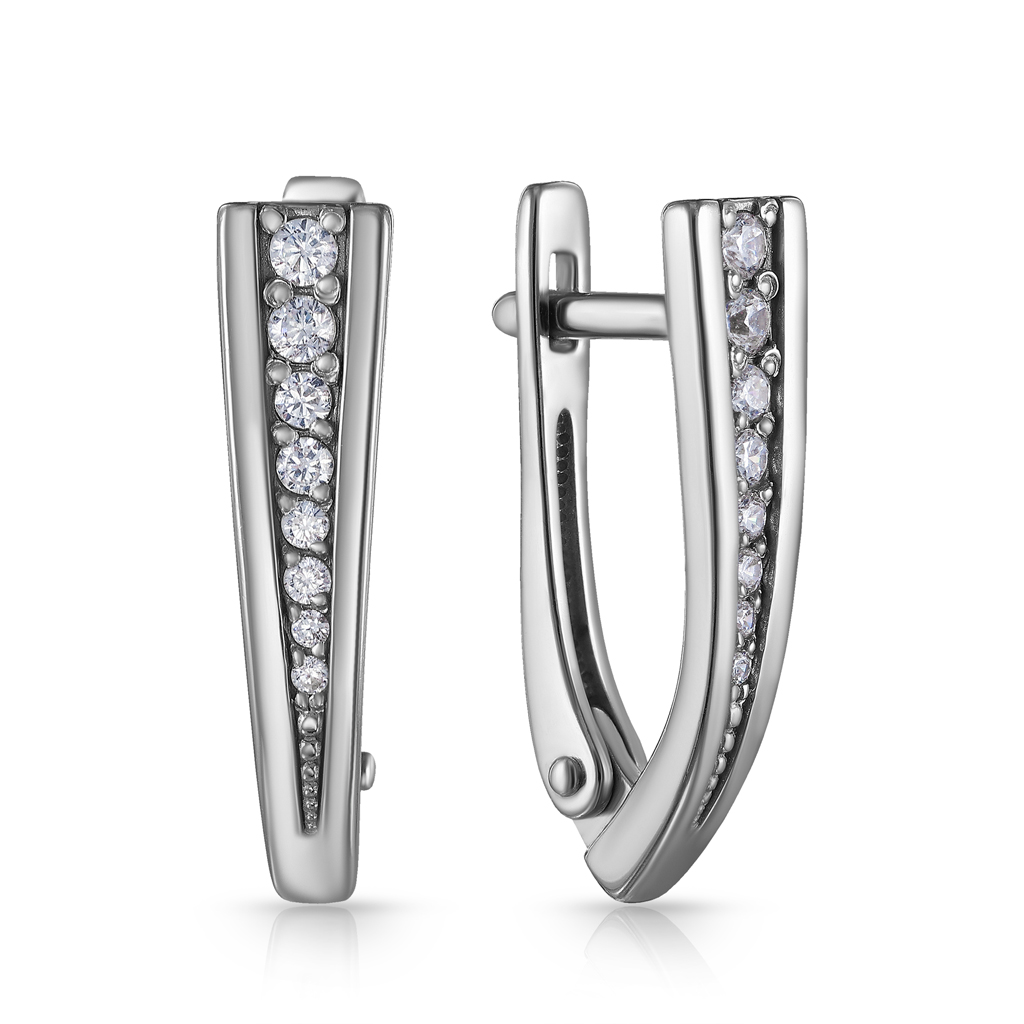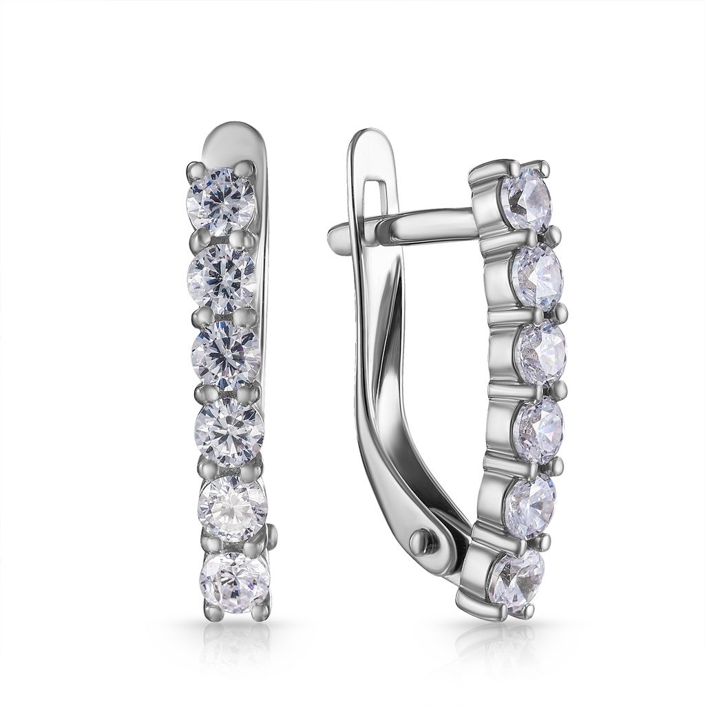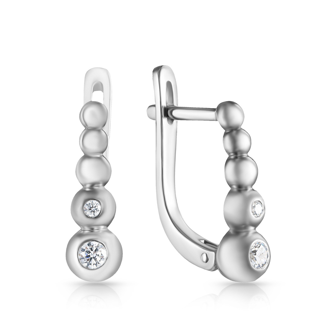 Серьги с английским замком из белого золота с фианитом