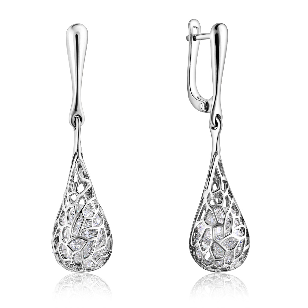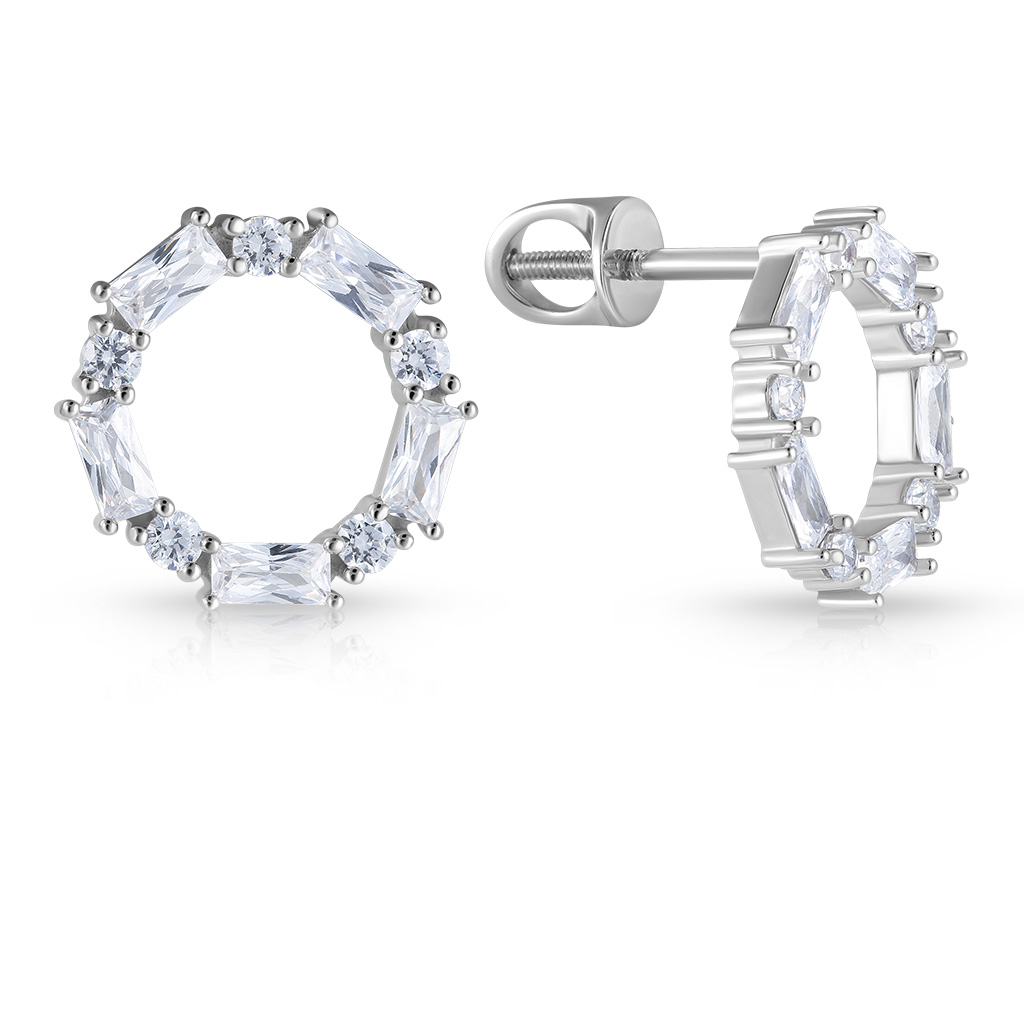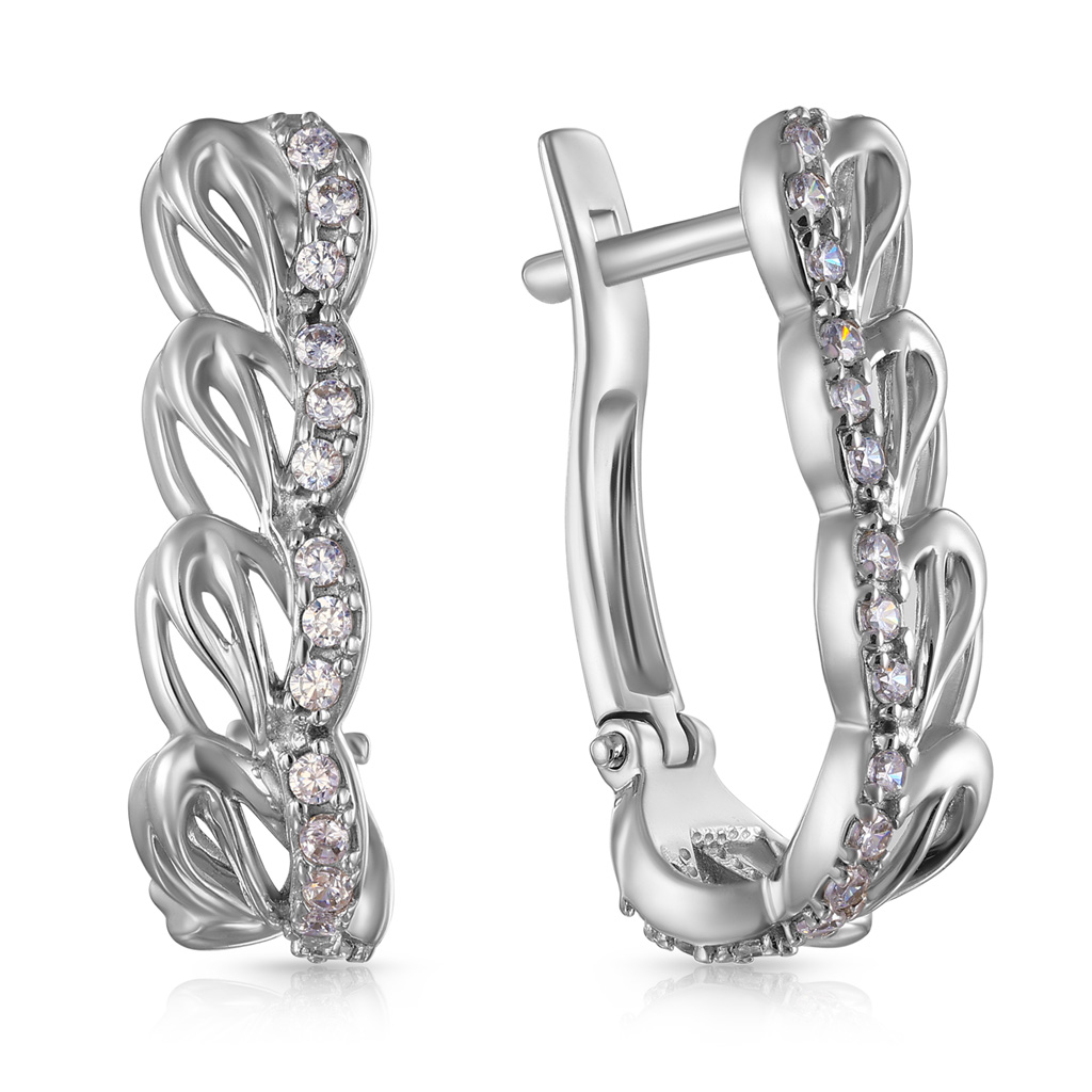 Серьги из белого золота с фианитом