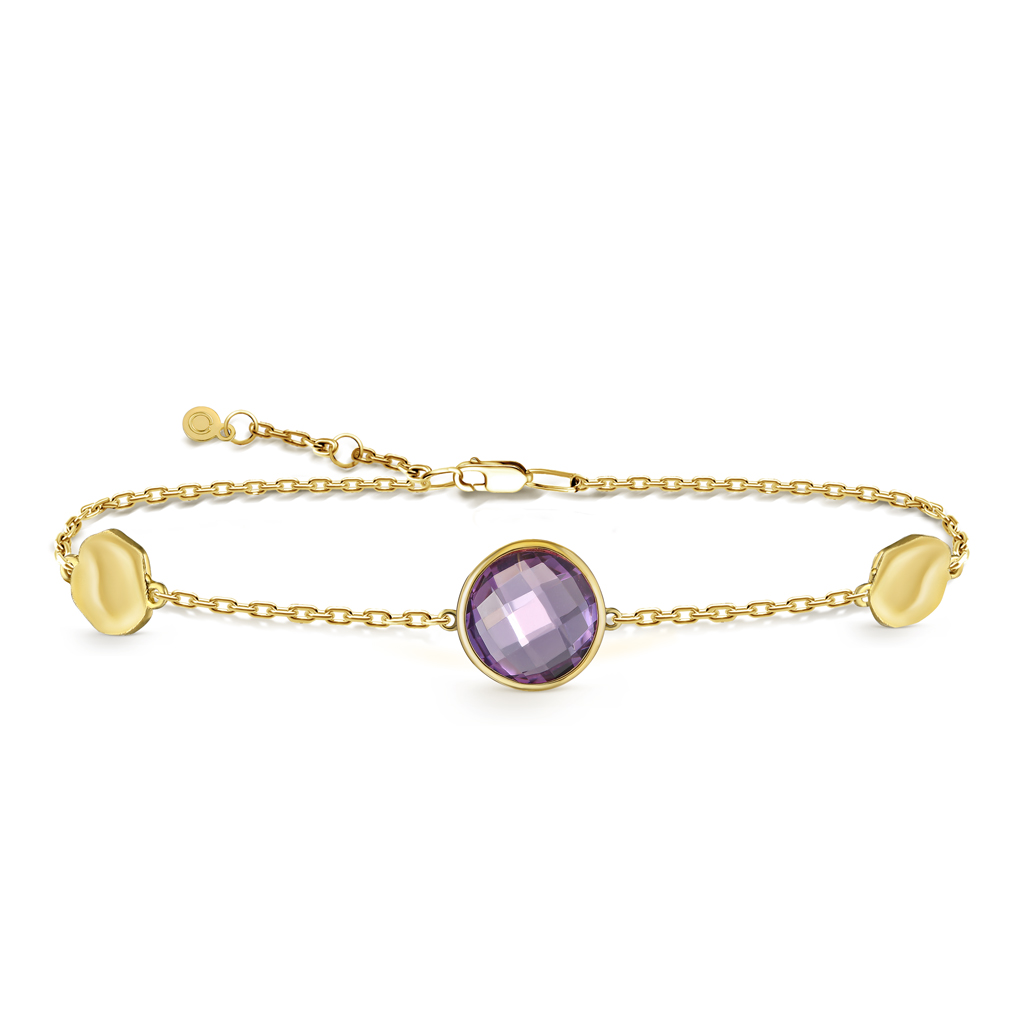 Браслет декоративный из желтого золота с кварцем и аметистом