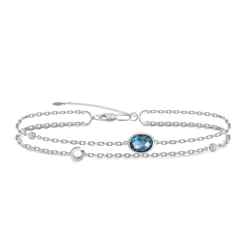 Браслет декоративный из белого золота с топазом, плетение якорное