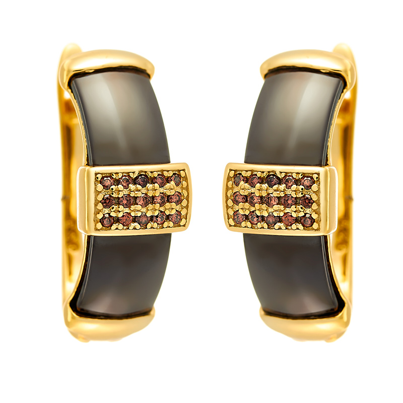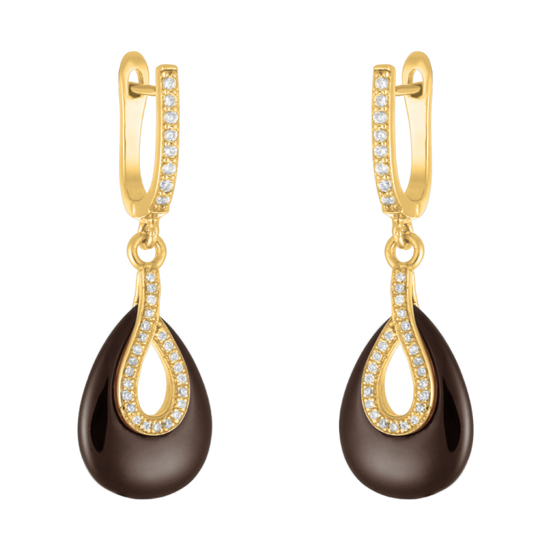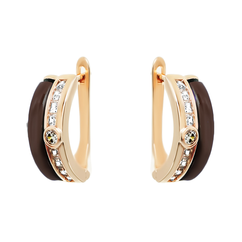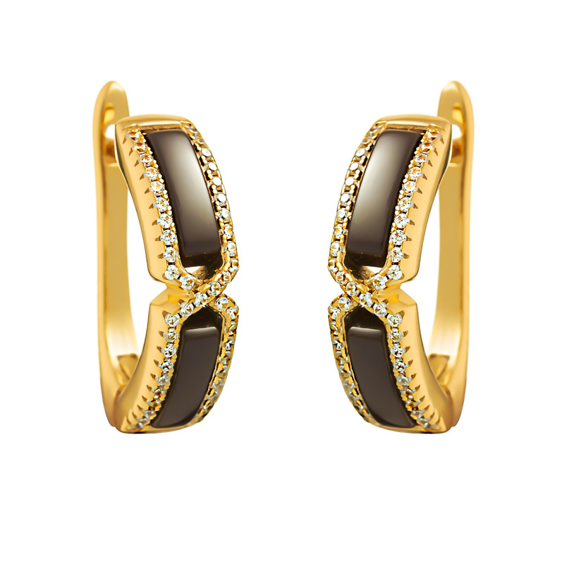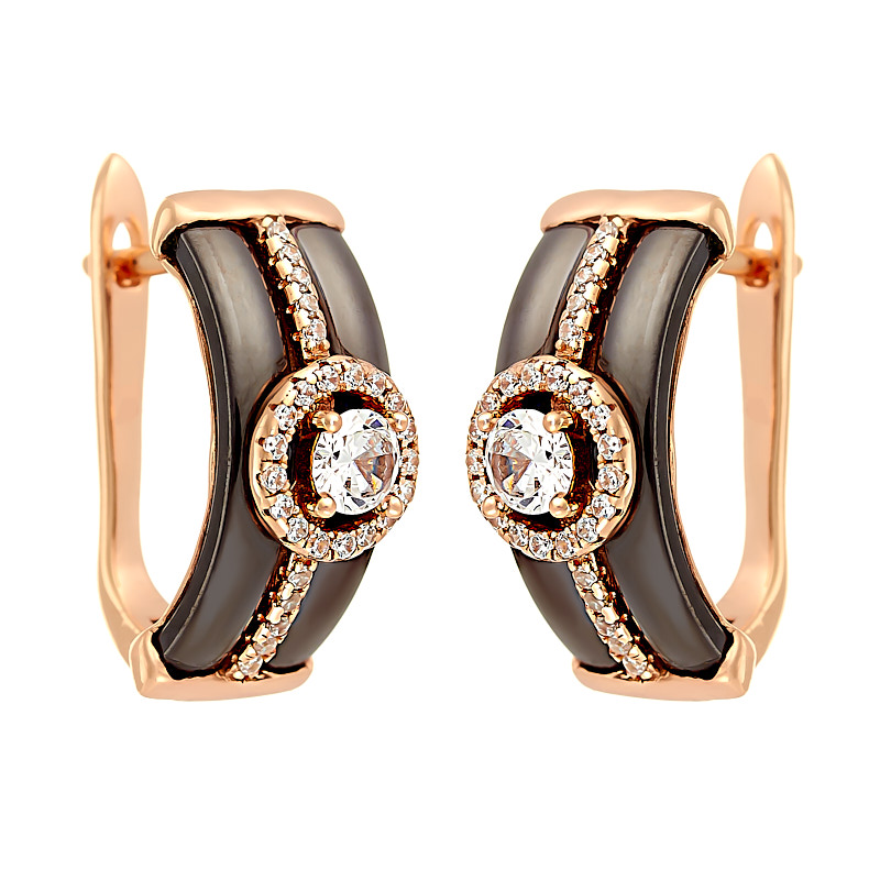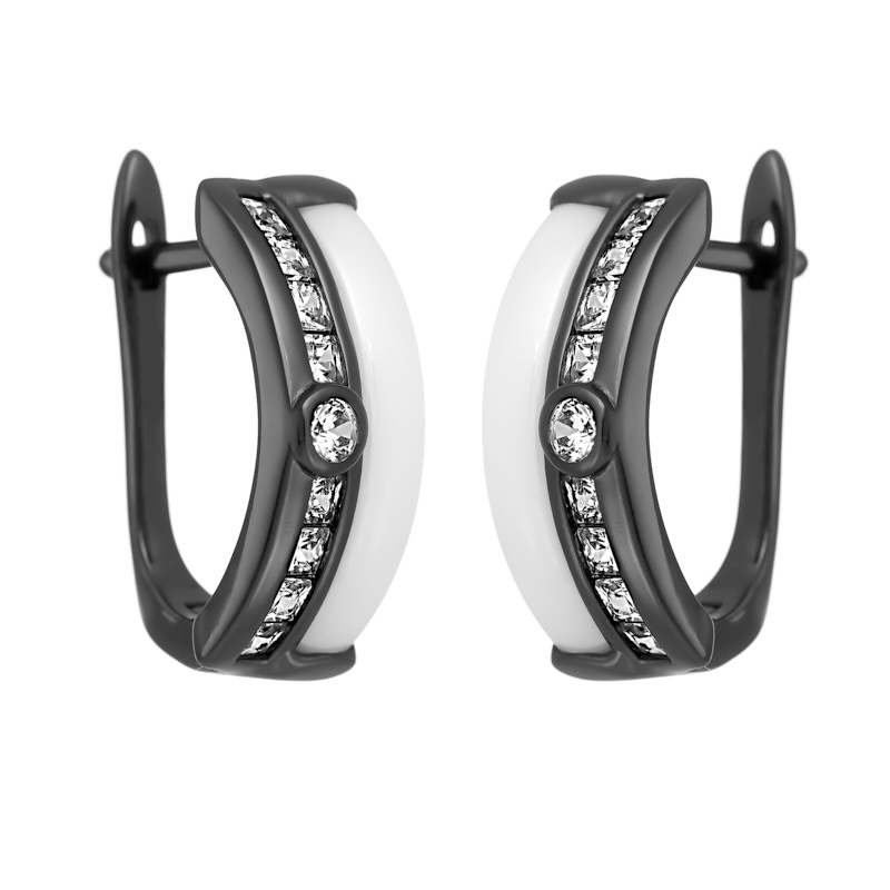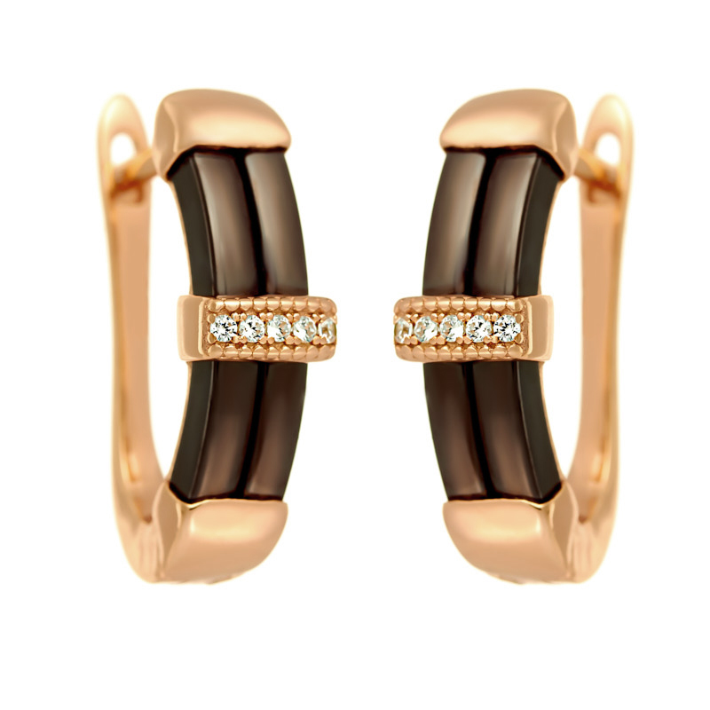 Серьги с английским замком из серебра с керамикой, фианитом, золочением