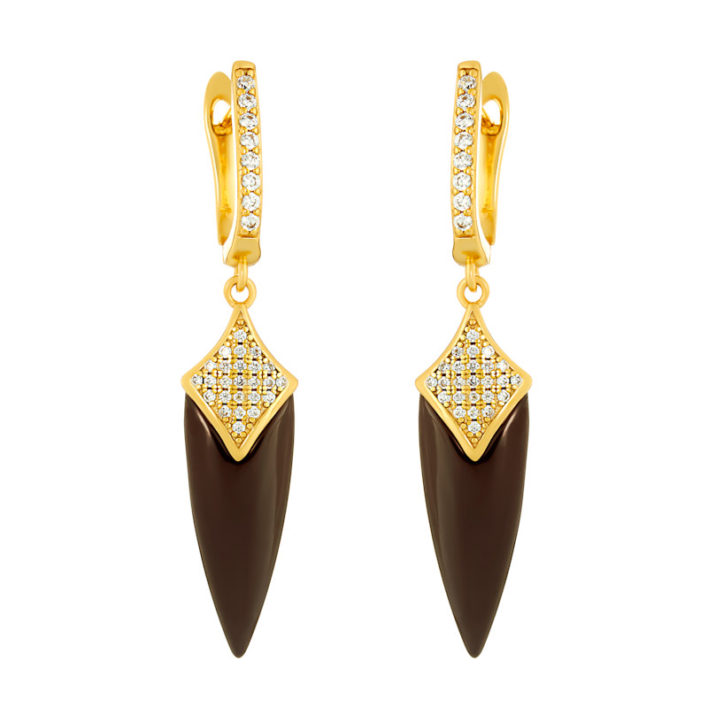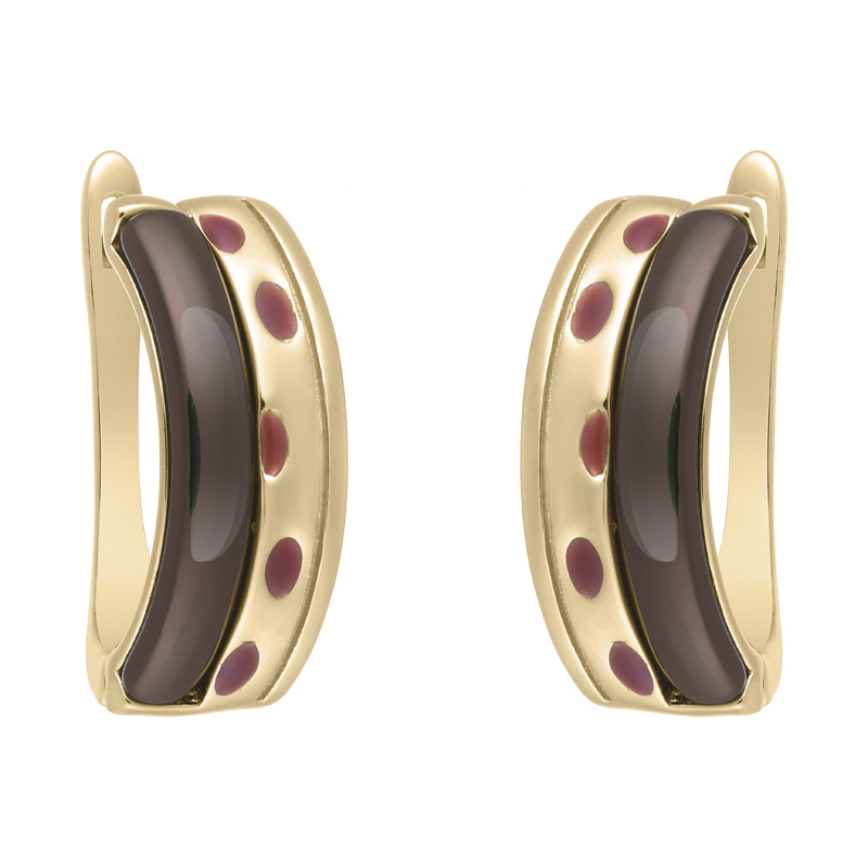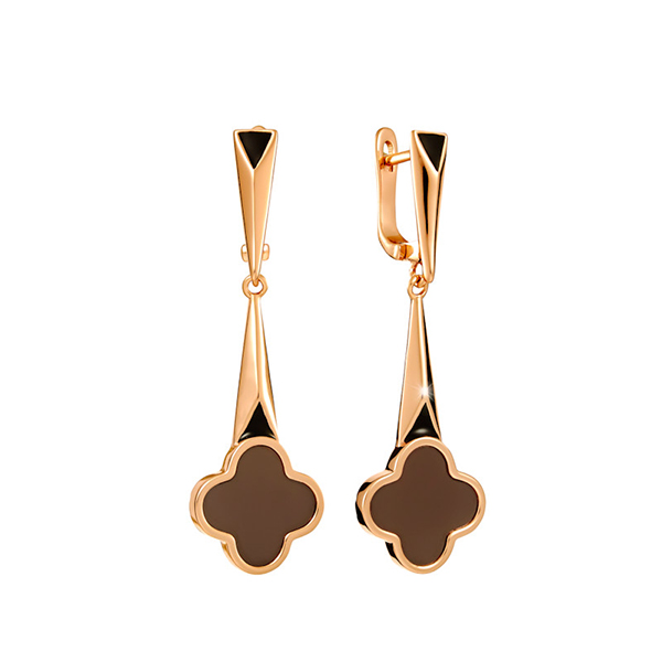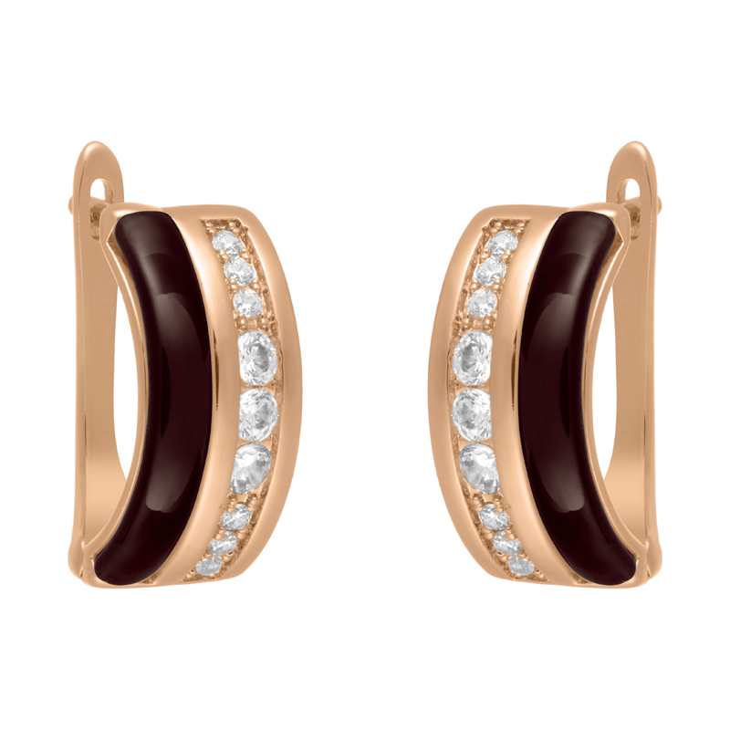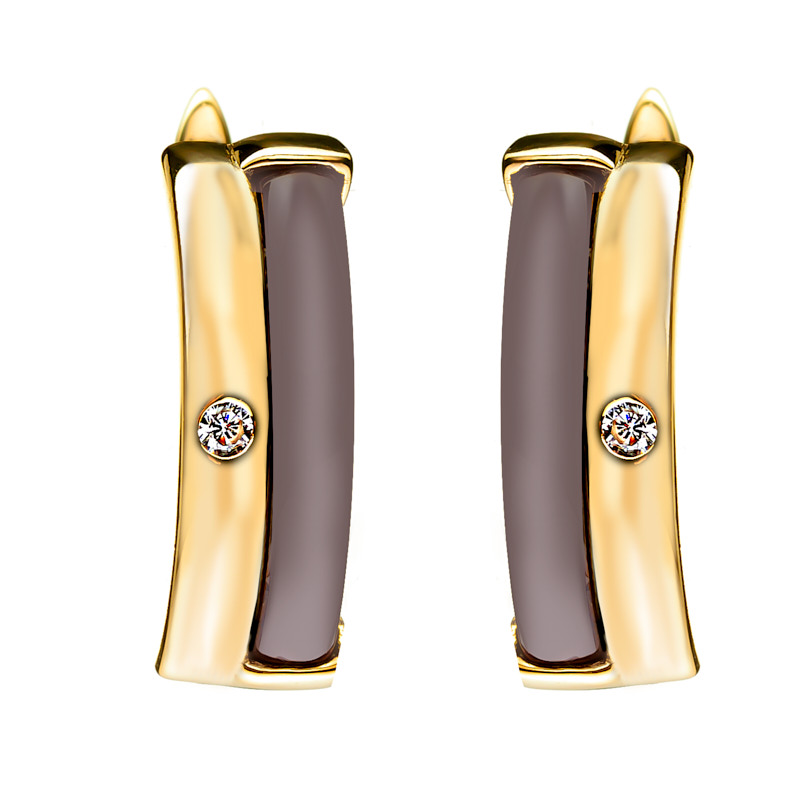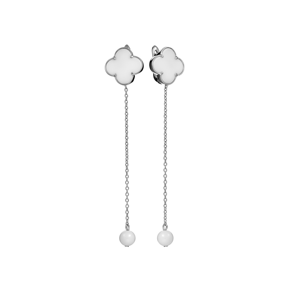 Серьги с английским замком из серебра с керамикой, фианитом, золочением
