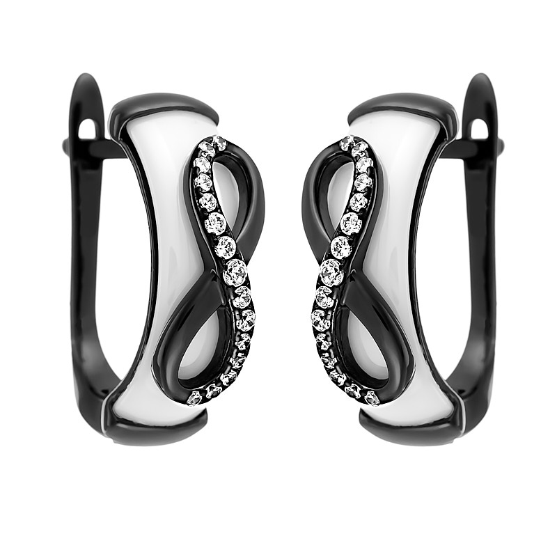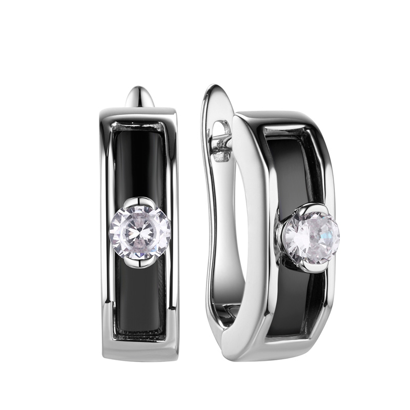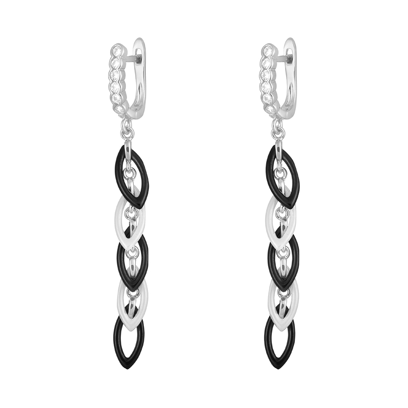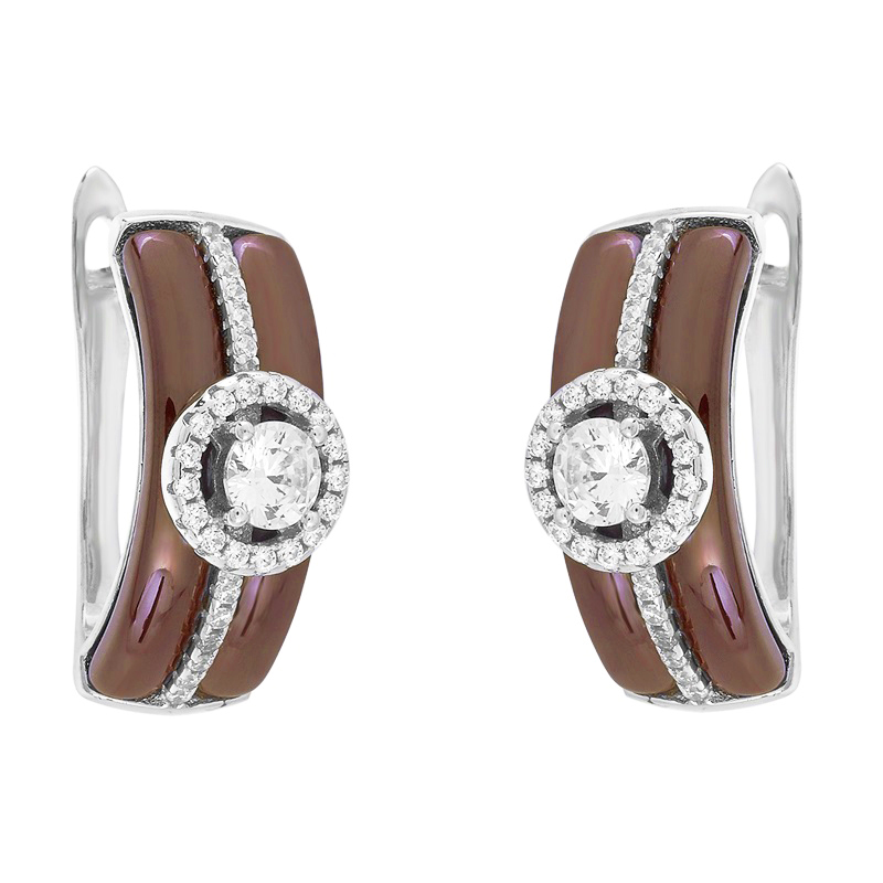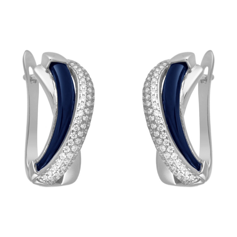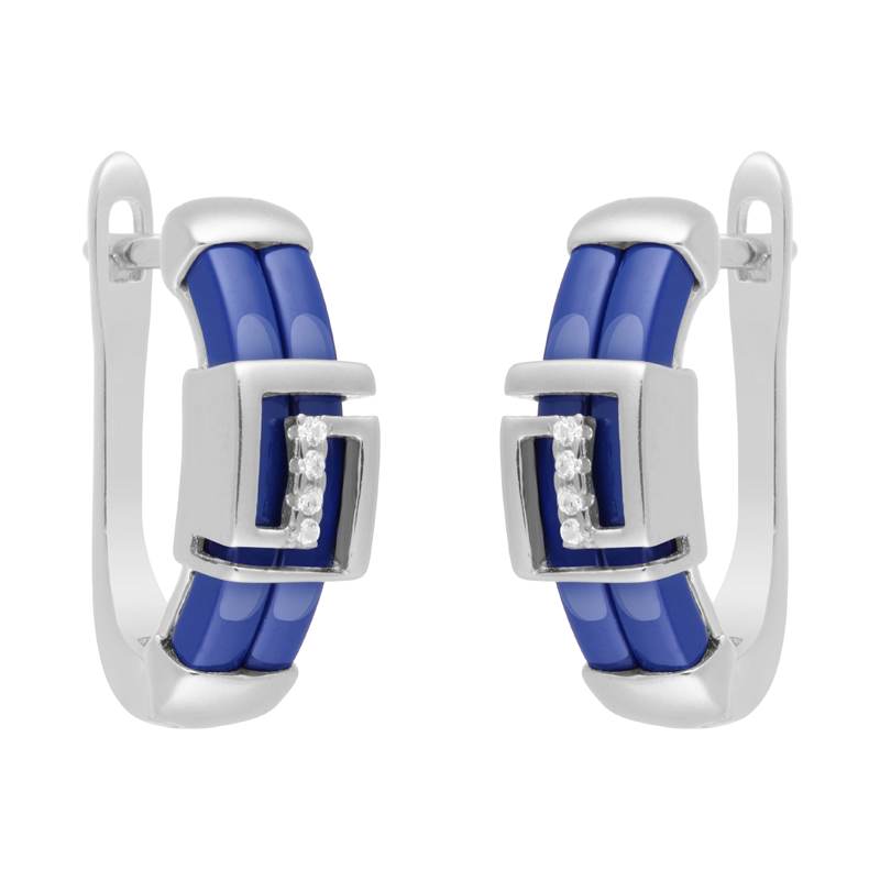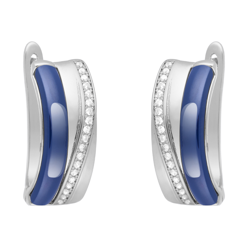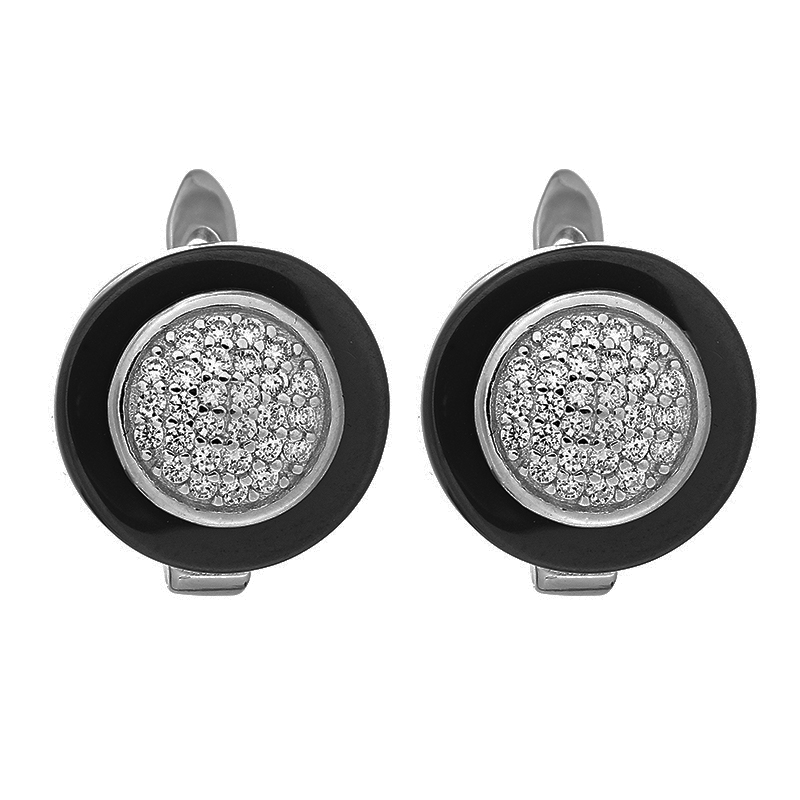 Серьги с английским замком из серебра с керамиками, циркониями и эмалью