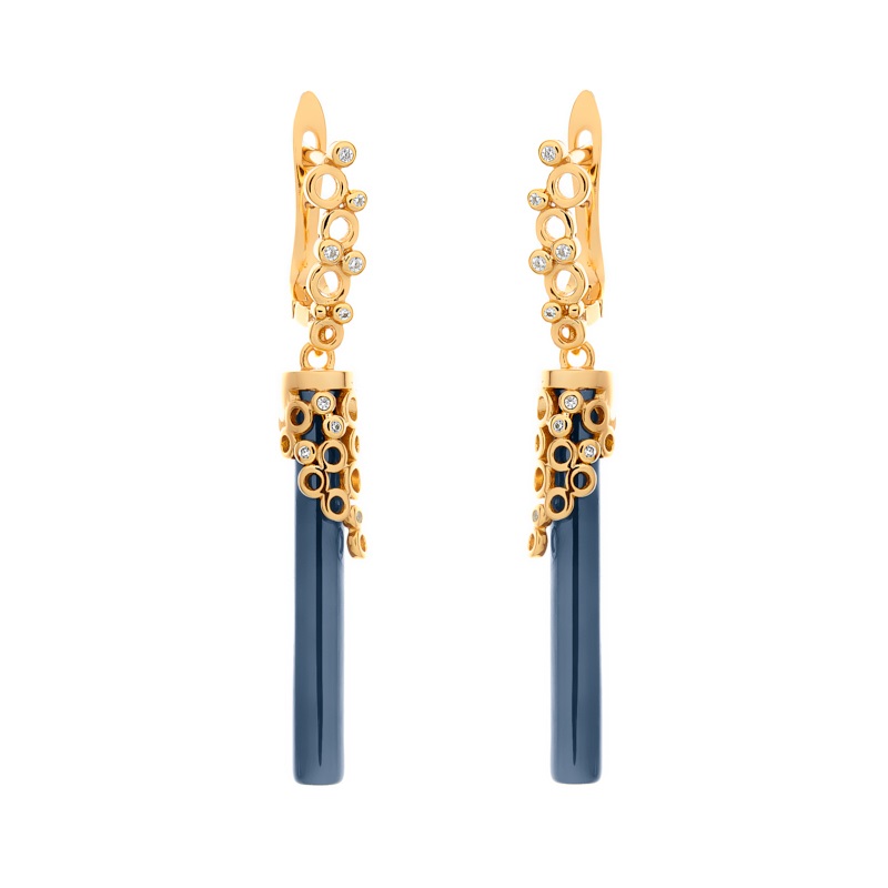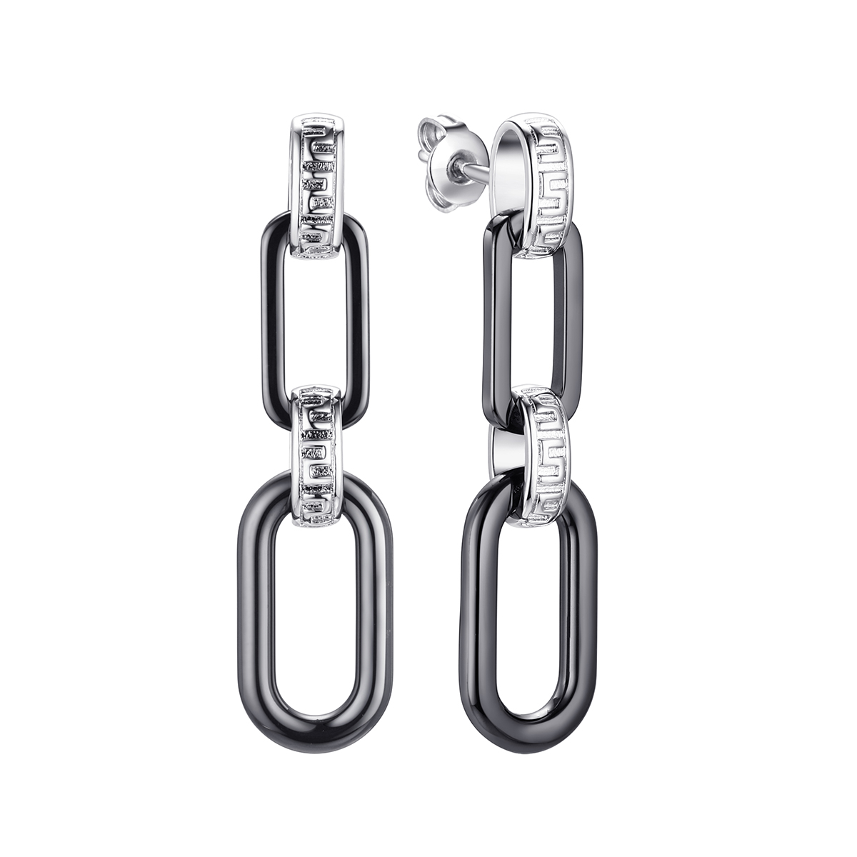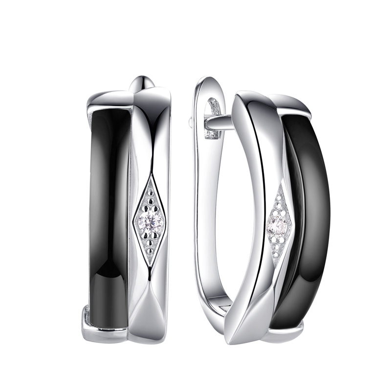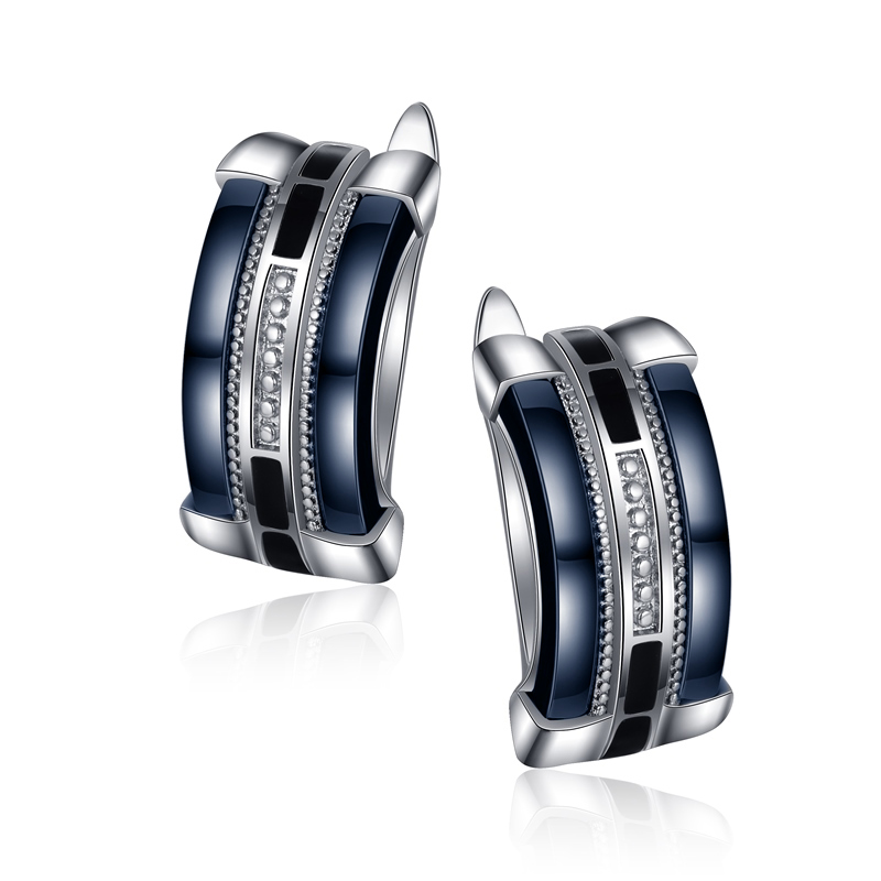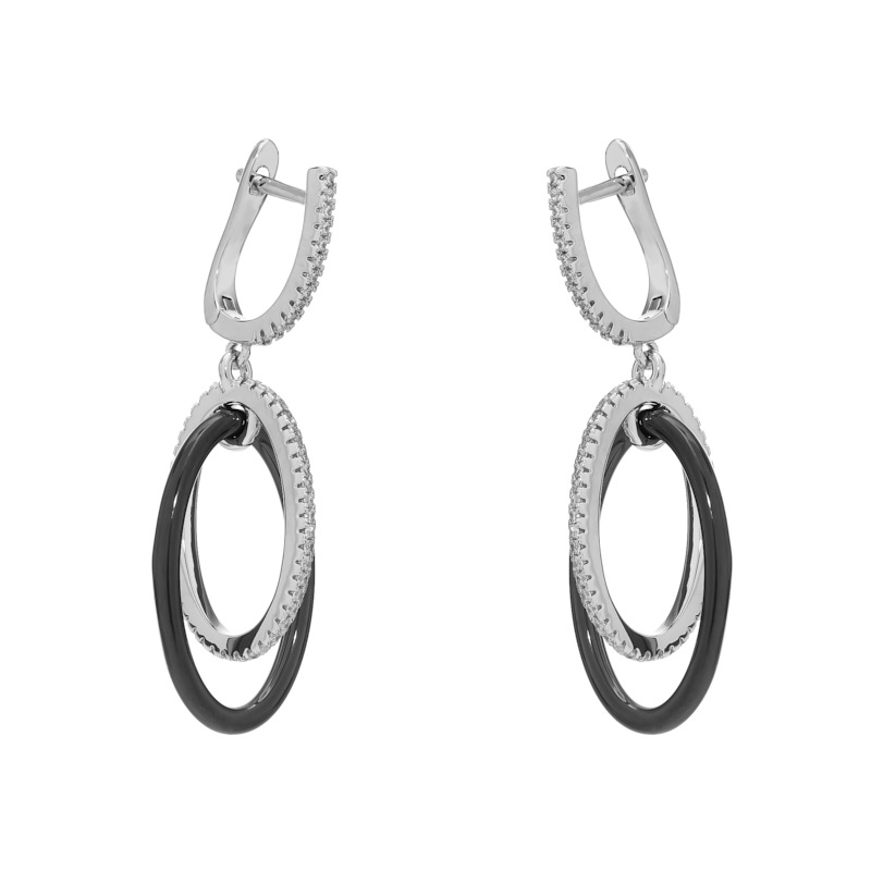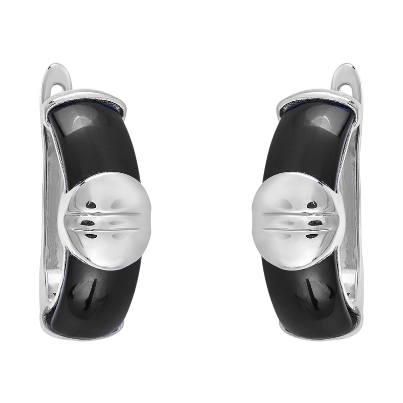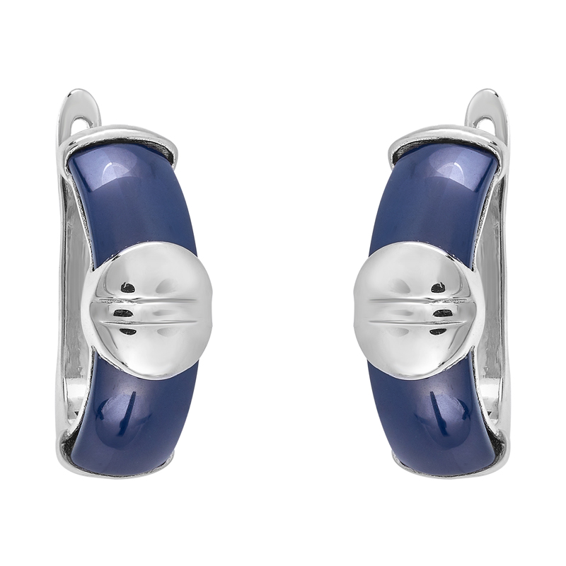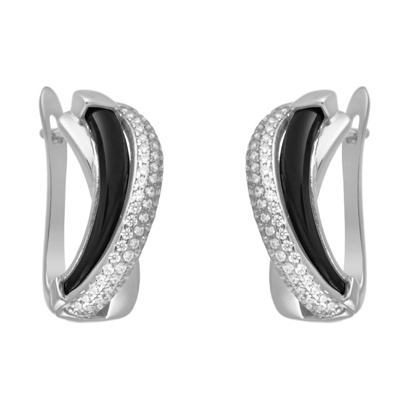 Серьги с английским замком из серебра с керамиками, циркониями и эмалью