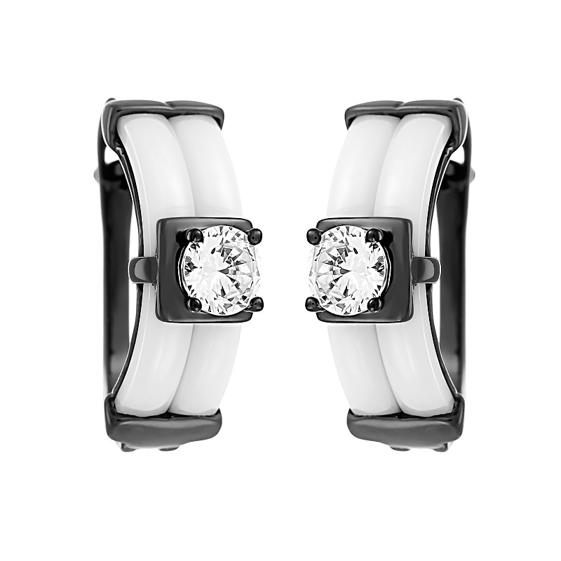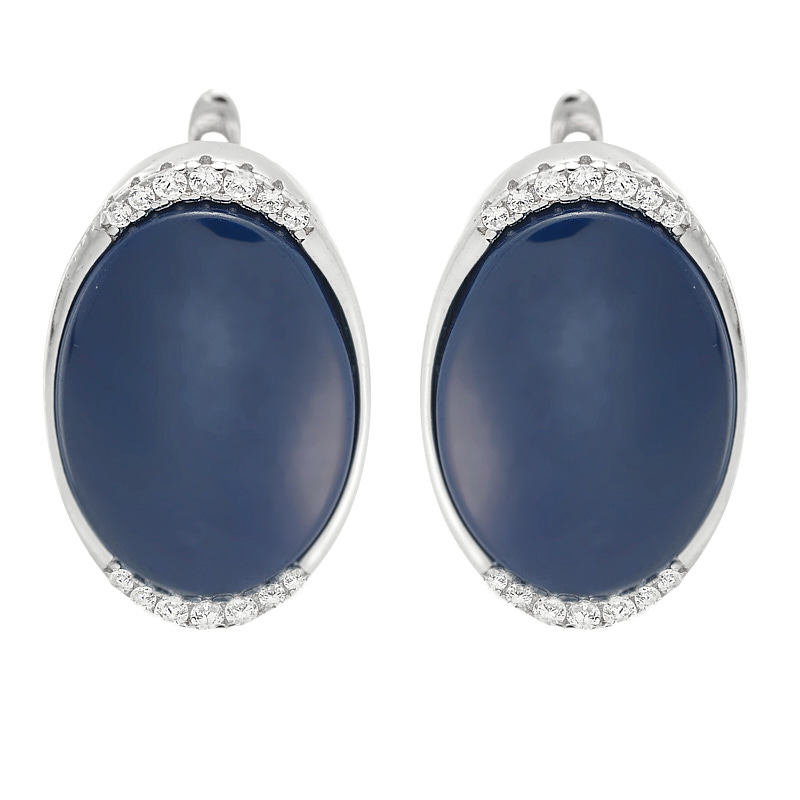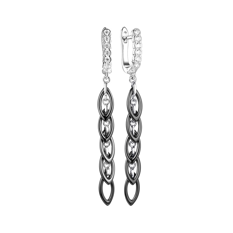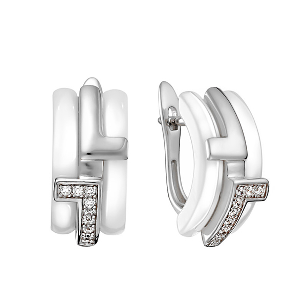 Серьги с английским замком из серебра с керамиками, циркониями и элом-т