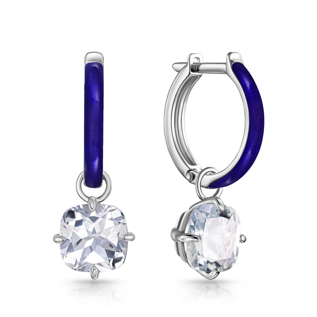 Серьги с английским замком из белого золота с бриллиантами, сапфирами, эмалью