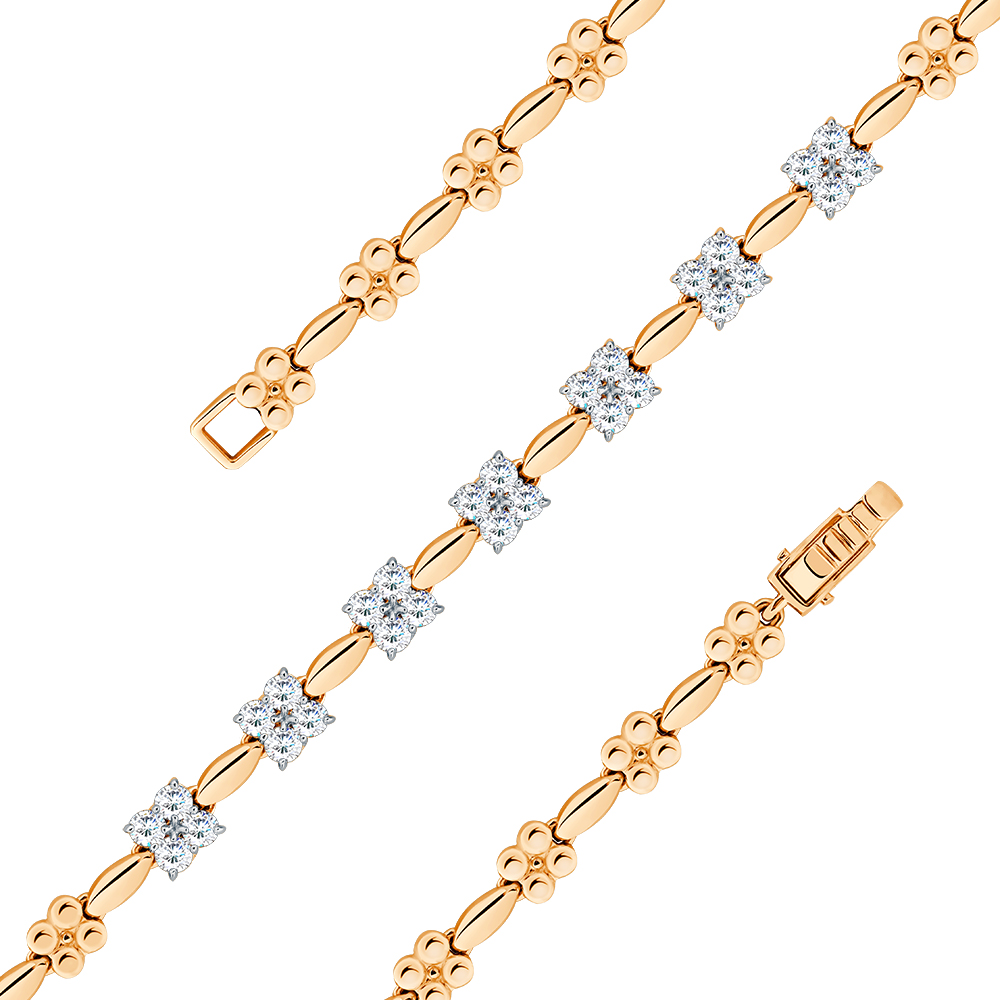 Браслет декоративный из желтого золота с бриллиантами, плетение якорное