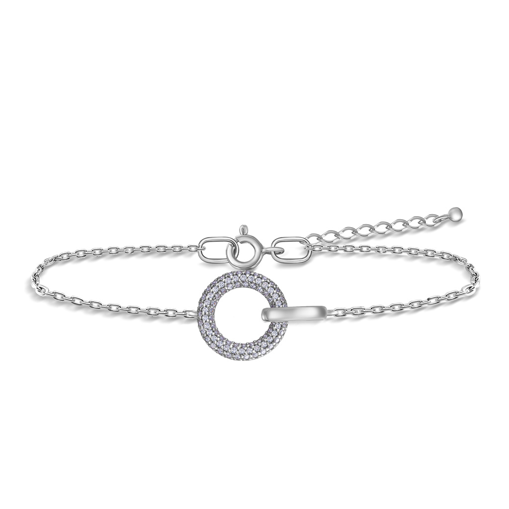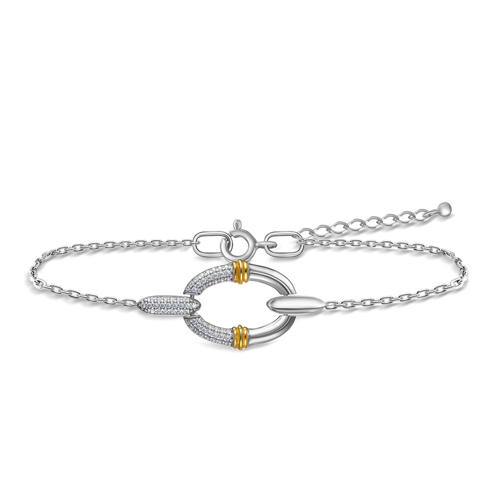 Браслет декоративный из желтого золота с фианитом, плетение якорное