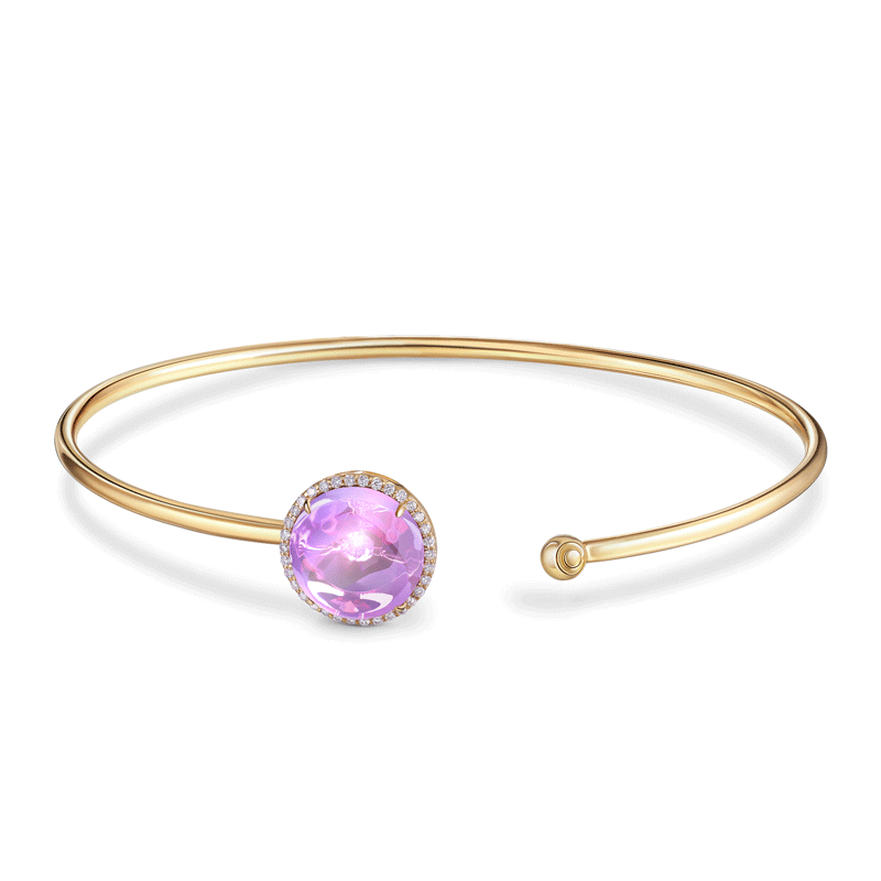 Браслет декоративный из желтого золота с кварцем и аметистом