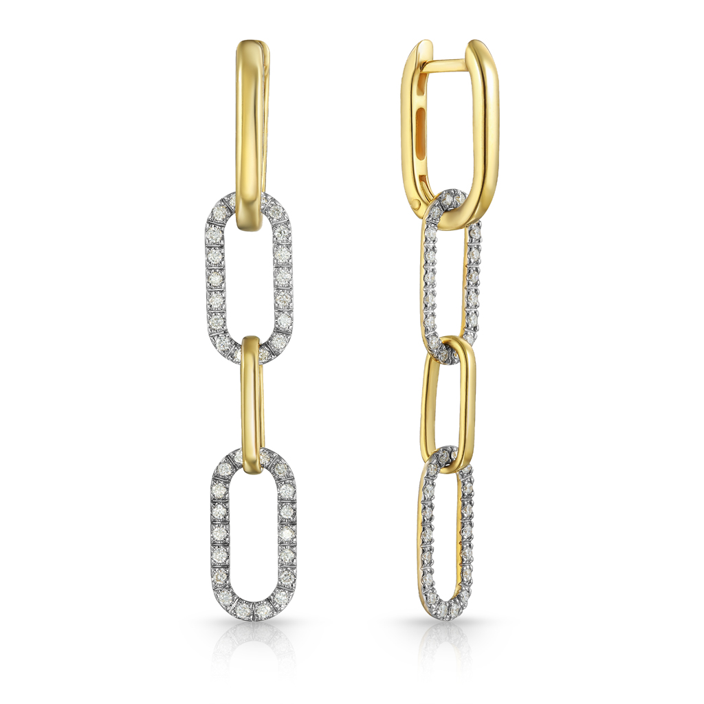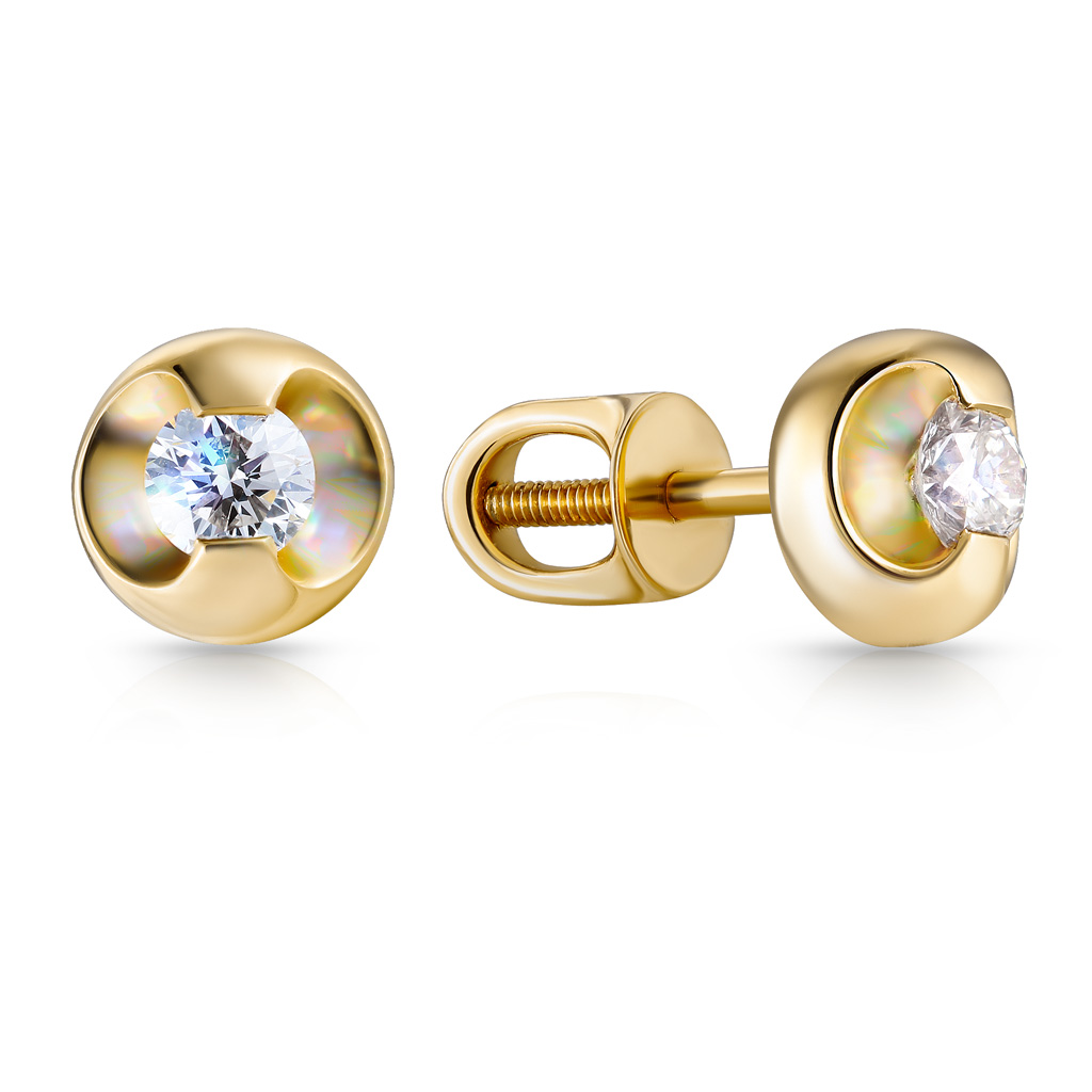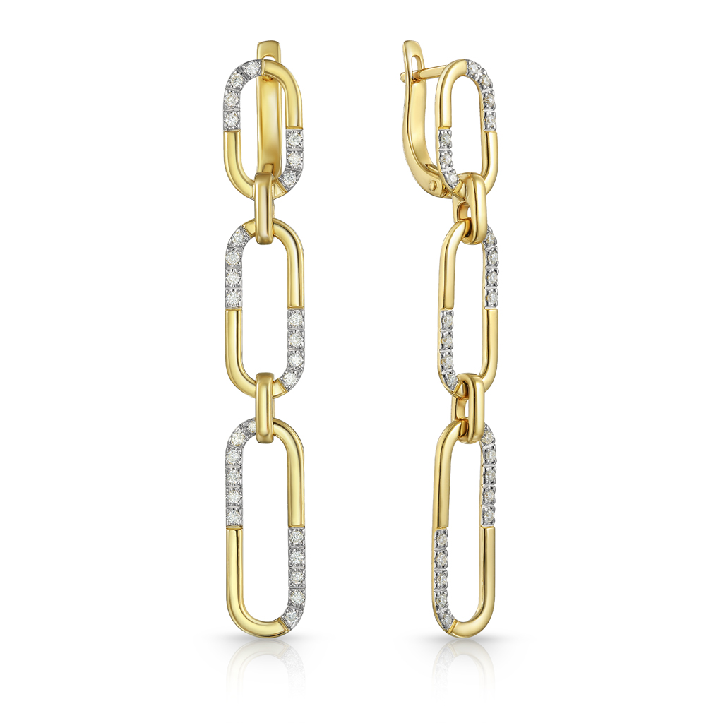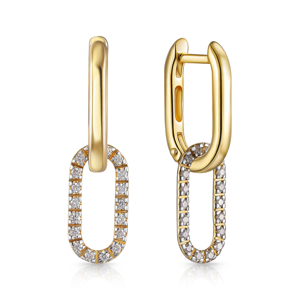 Серьги Пусеты из желтого золота с бриллиантами, плетение якорное