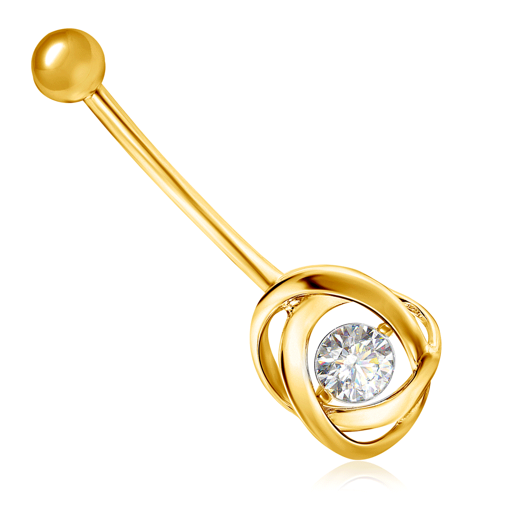 Пирсинг из желтого золота с танцующим бриллиантом