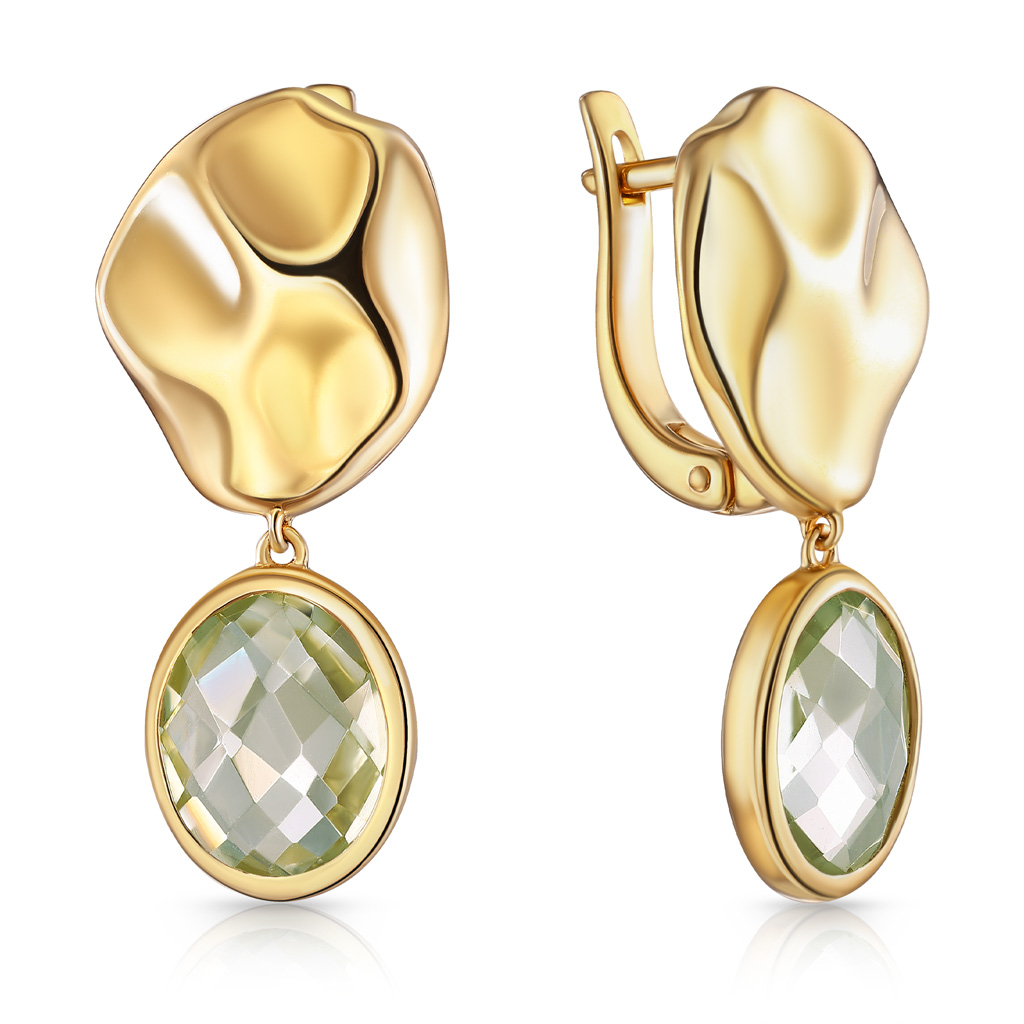Серьги с английским замком из желтого золота с аметистом и фианитом