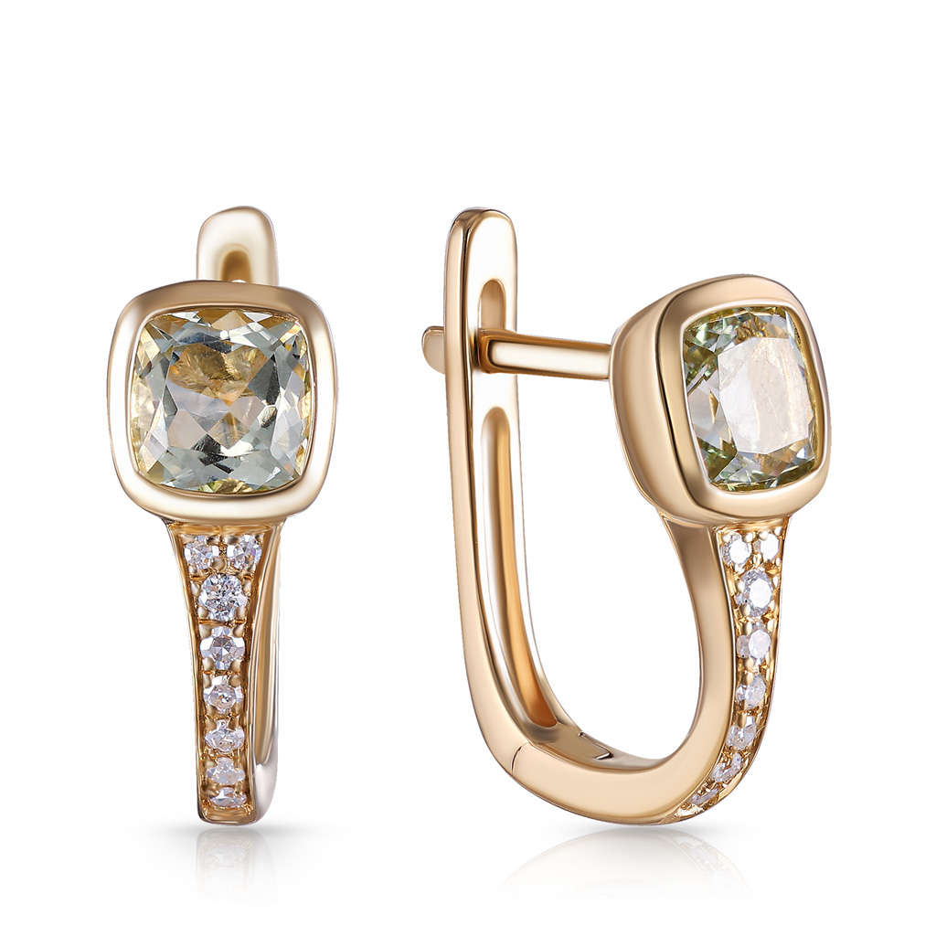 Серьги с английским замком из желтого золота с бриллиантами и аметистом