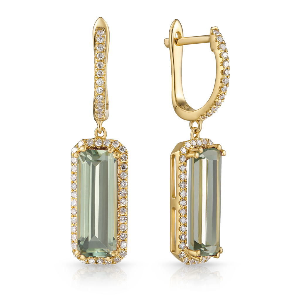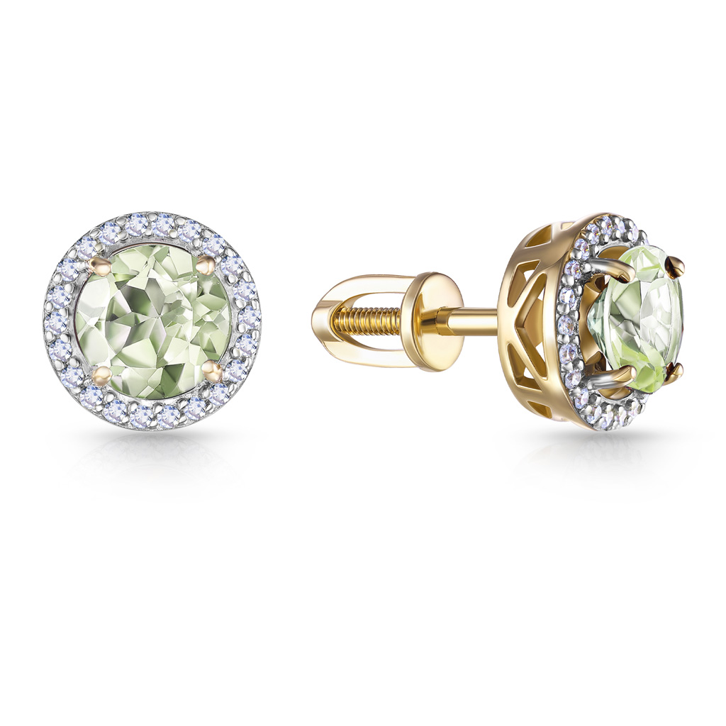Пусеты из желтого золота с аметистами, бриллиантами
