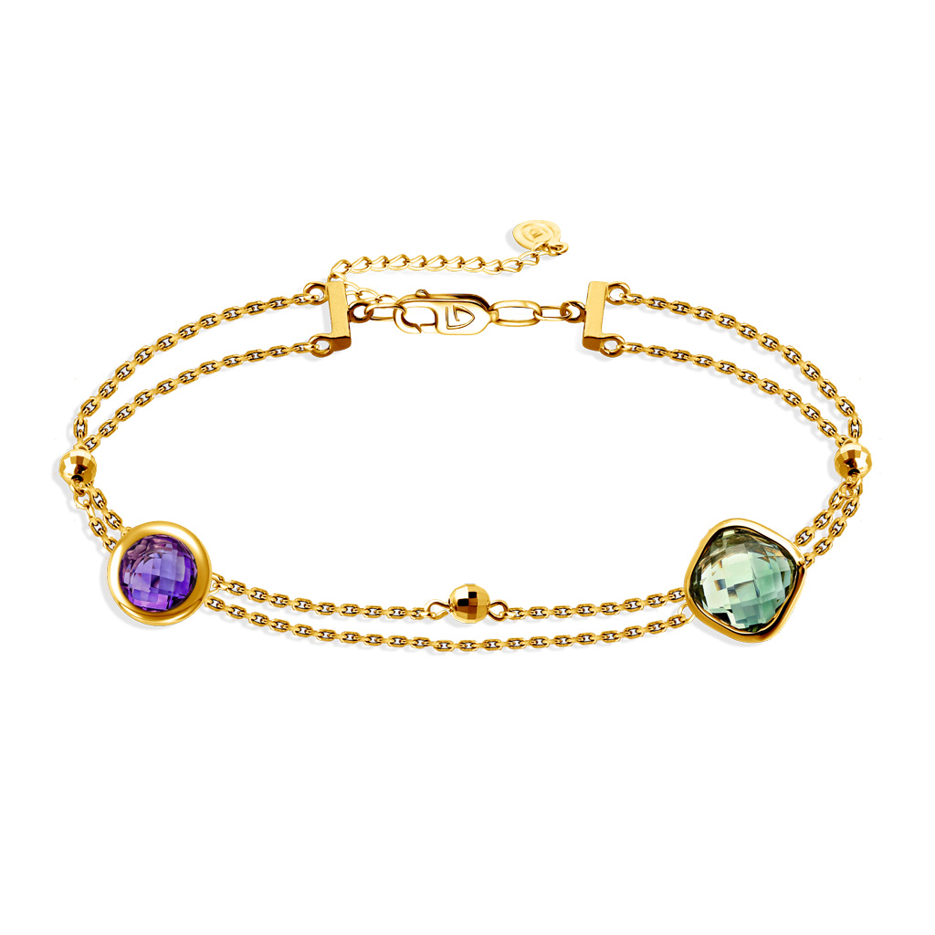 Браслет декоративный из желтого золота с аметистами и топазом