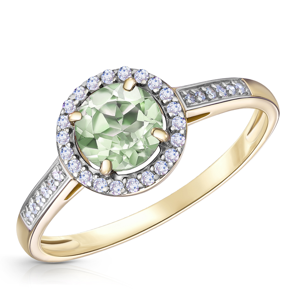 Кольцо из желтого золота с бриллиантами, аметистами