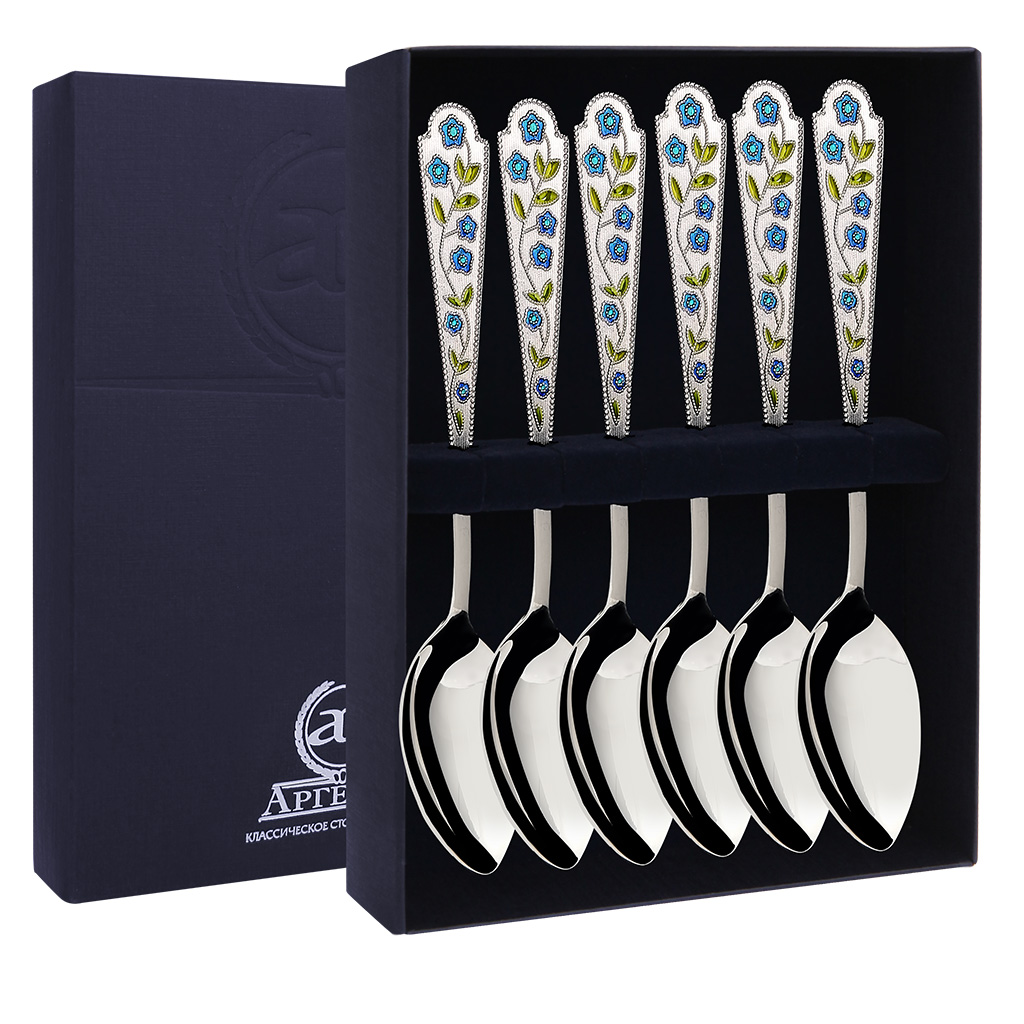 Набор серебряных чайных ложек "Лето-Василек", 6 предметов
