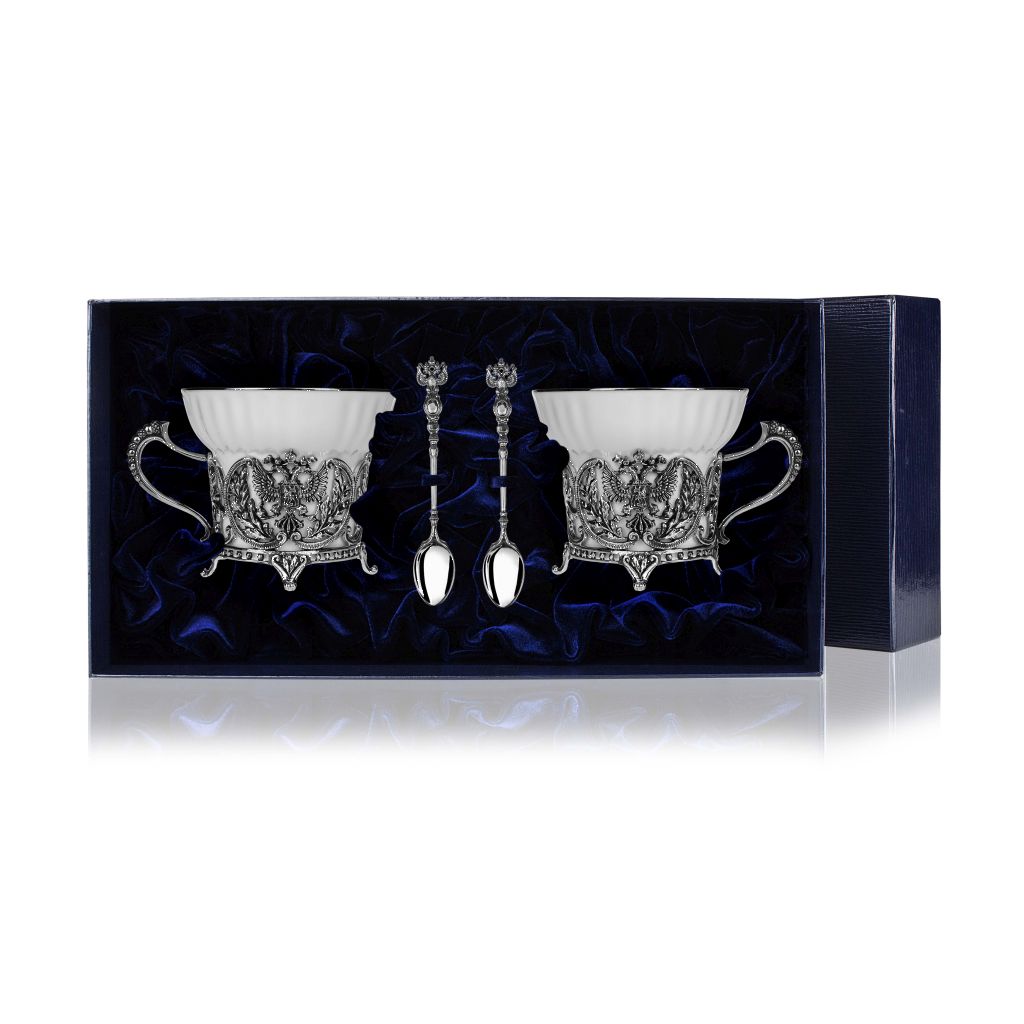 Серебряный чайный набор "Фаворит", 2 предмета