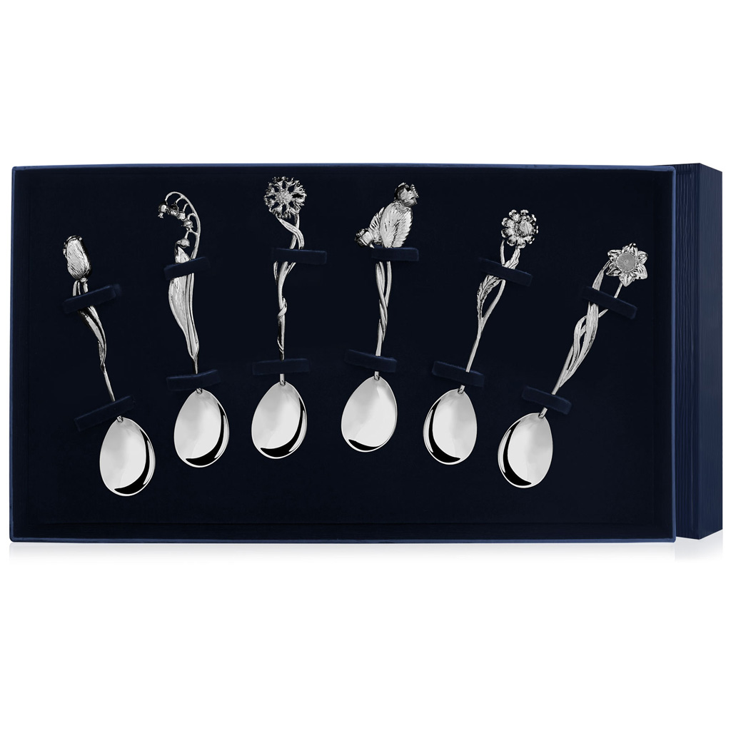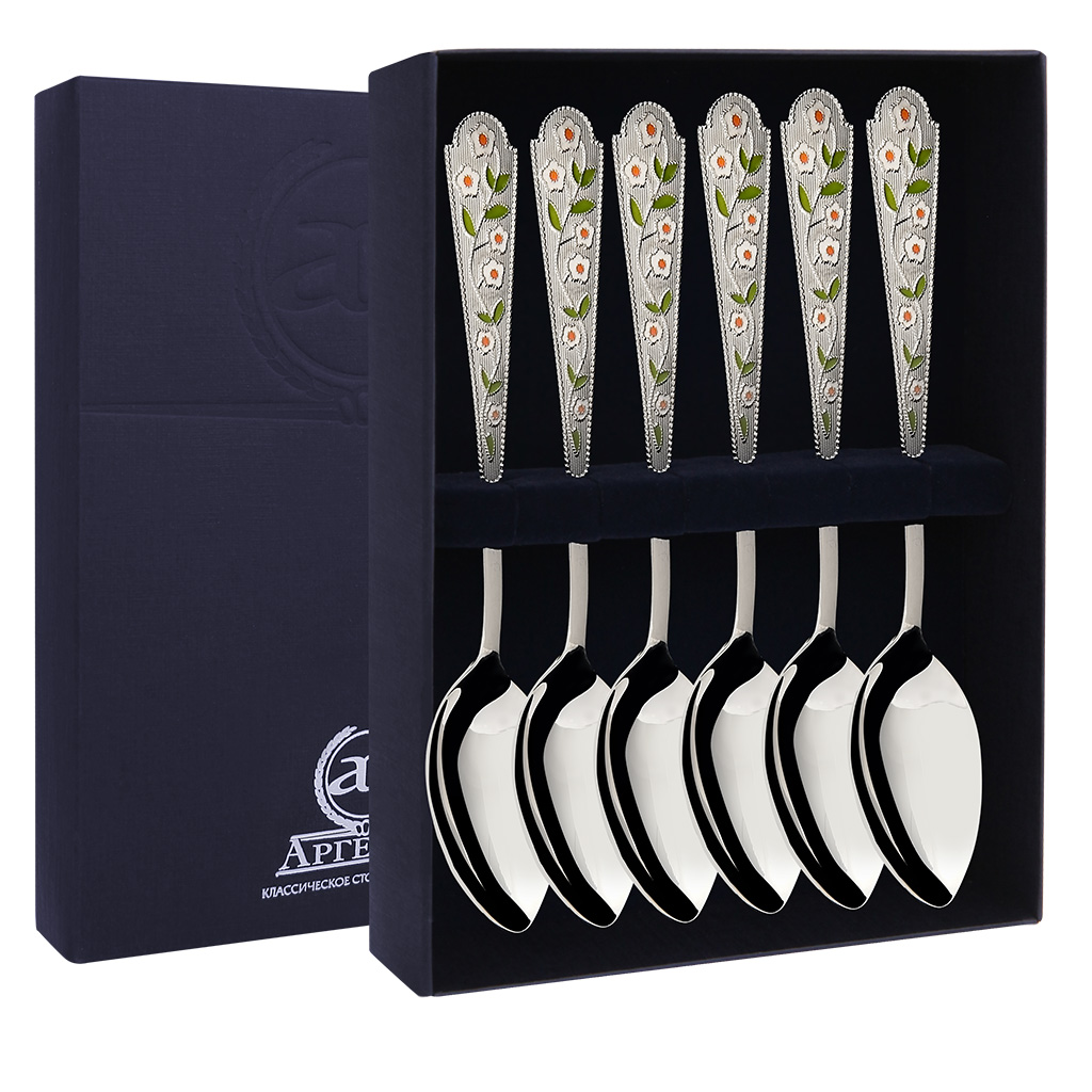 Набор серебряных чайных ложек "Цветы России", 6 предметов