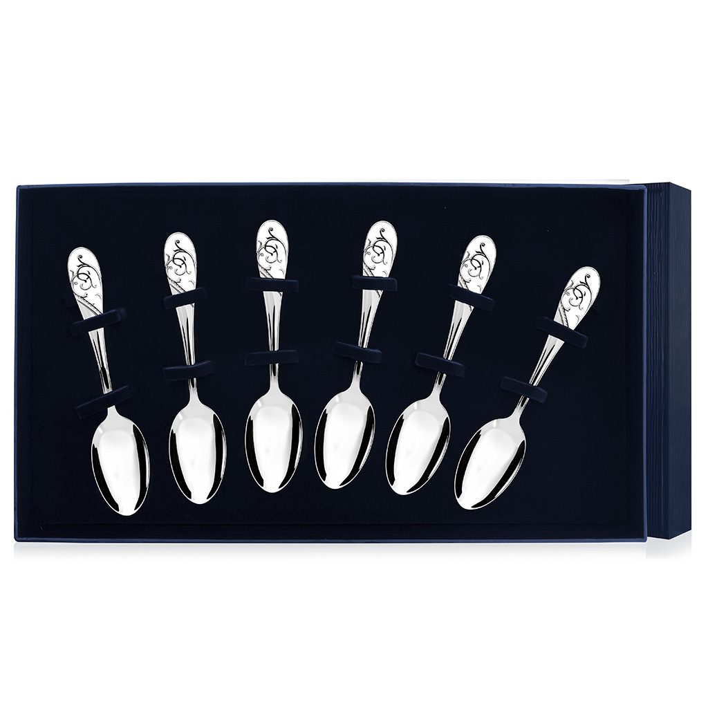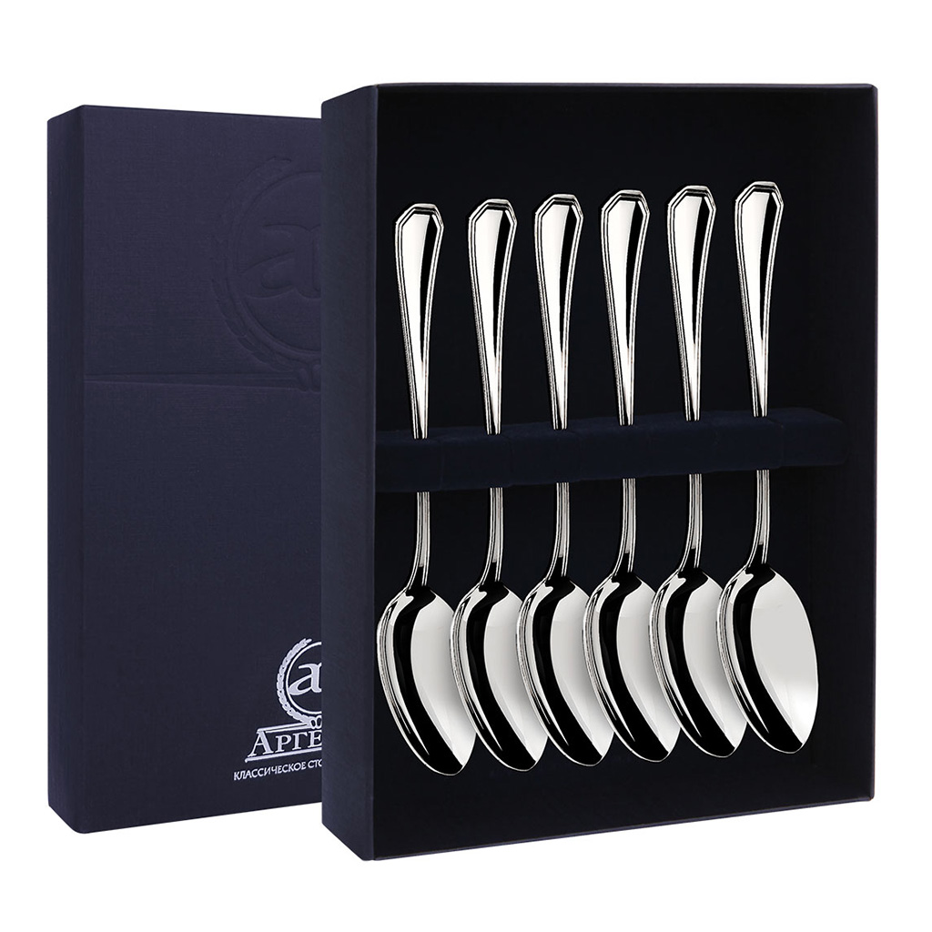 Набор чайных ложек из серебра "Подарочная" 6 предметов. Длина ложек 11.7 см