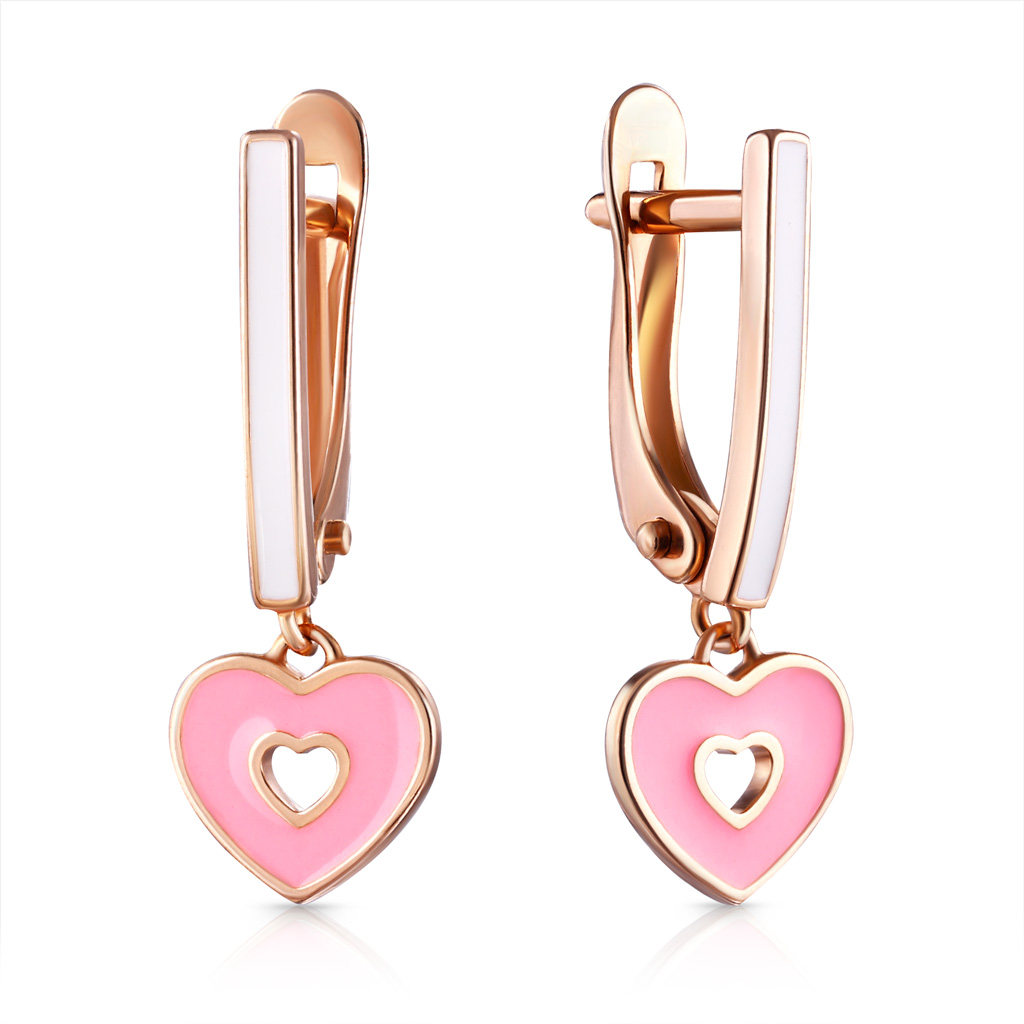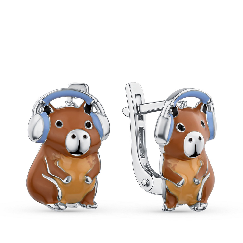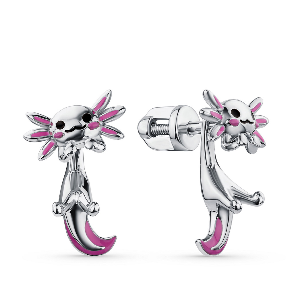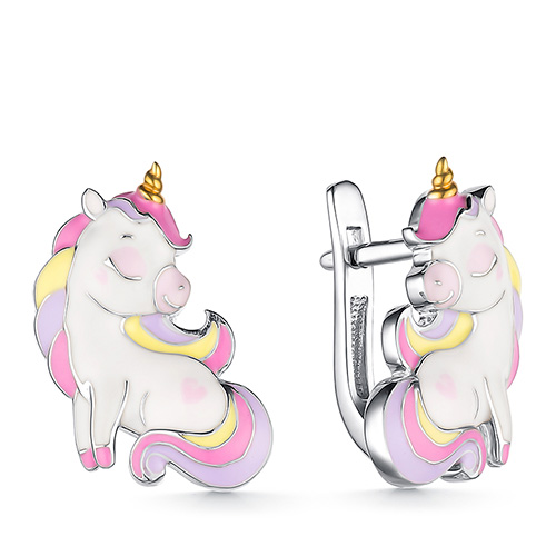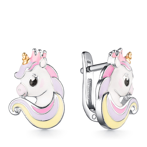 Серьги детские из серебра с фианитом, эмалью, золочением