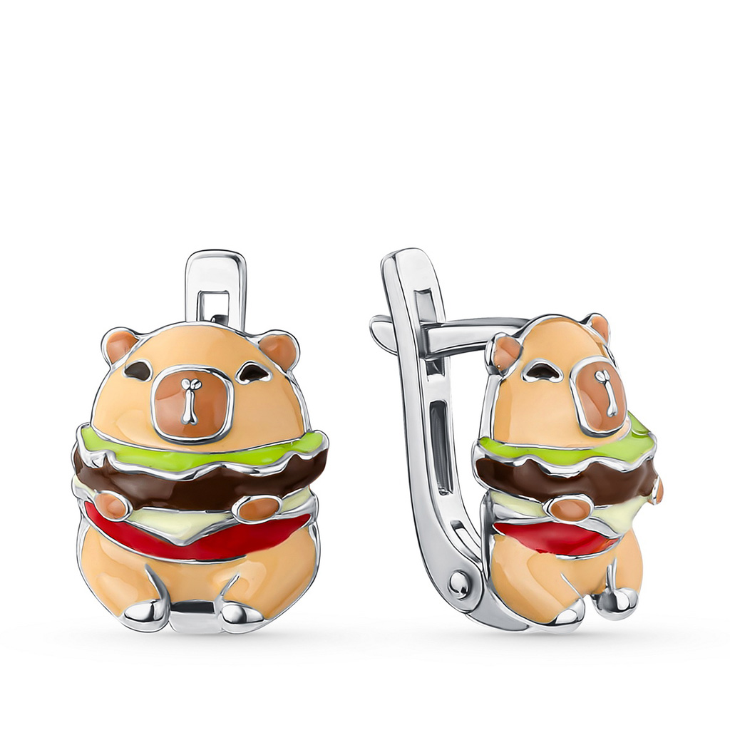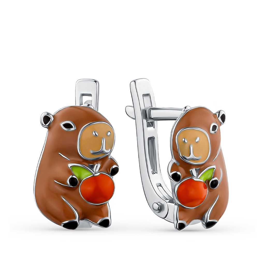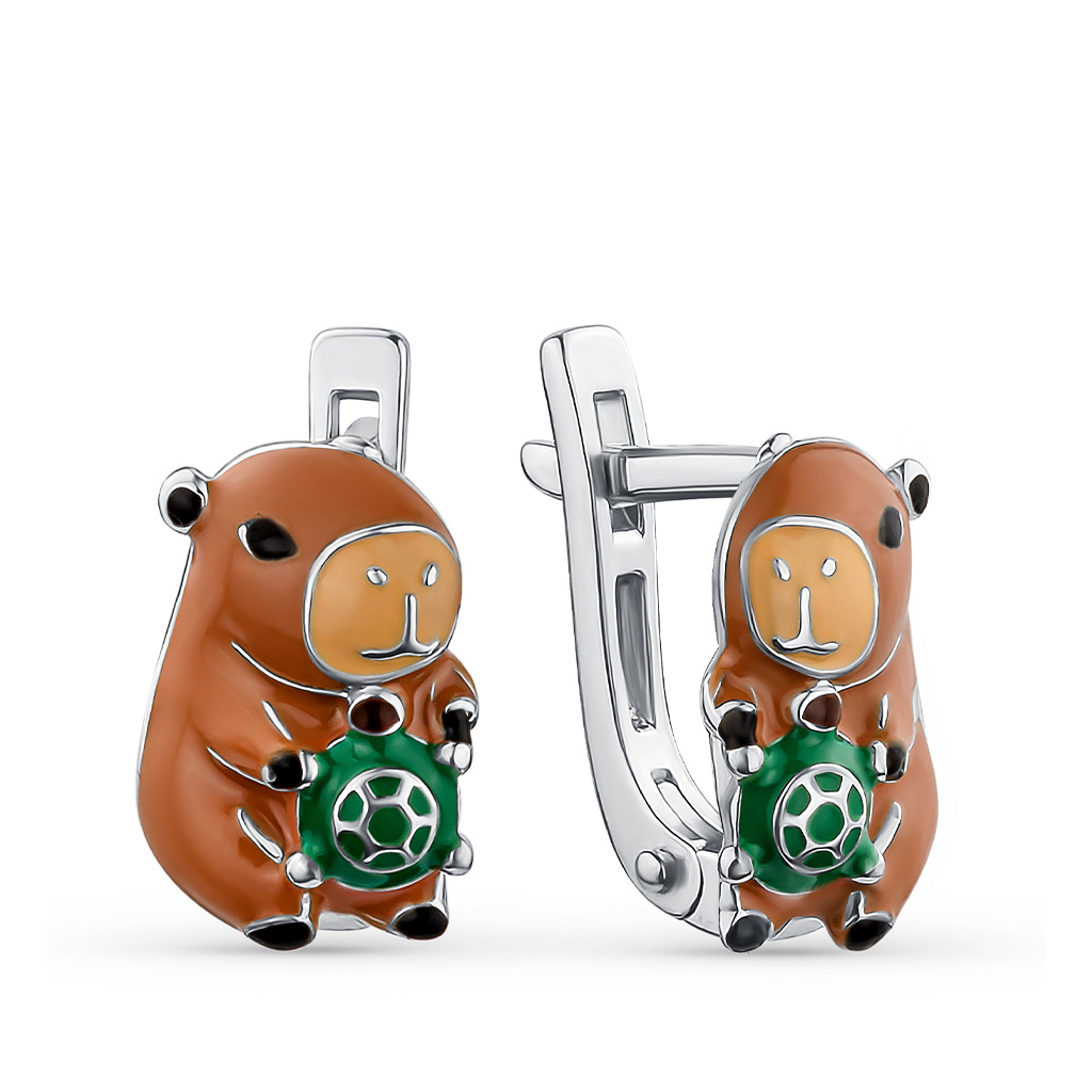 Серьги детские из серебра с фианитом, эмалью, золочением