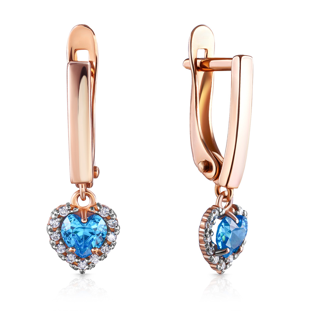 Серьги детские из серебра с фианитом, эмалью и золочением