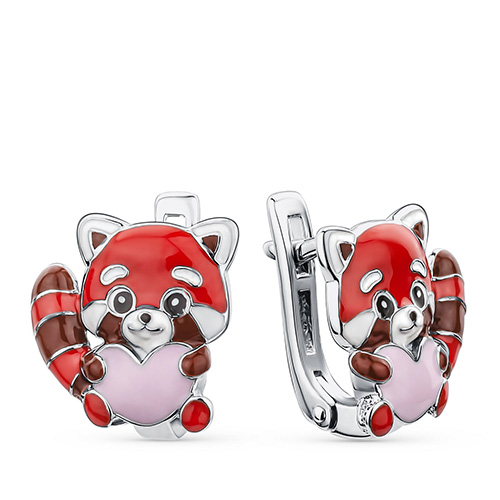 Серьги детские из серебра с эмалью и фианитом и золочением