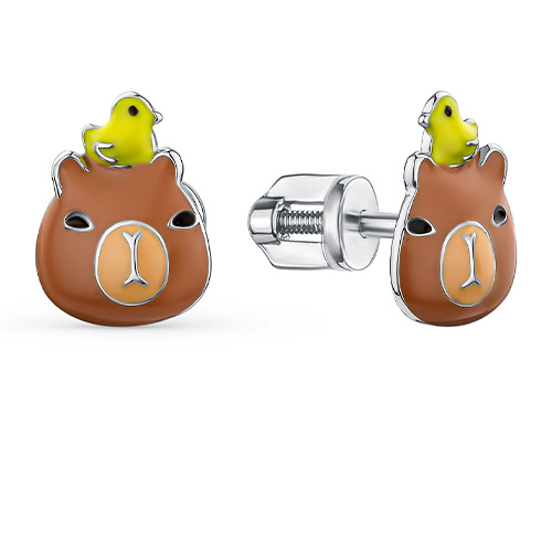 Серьги детские из серебра с эмалью, фианитом, золочением