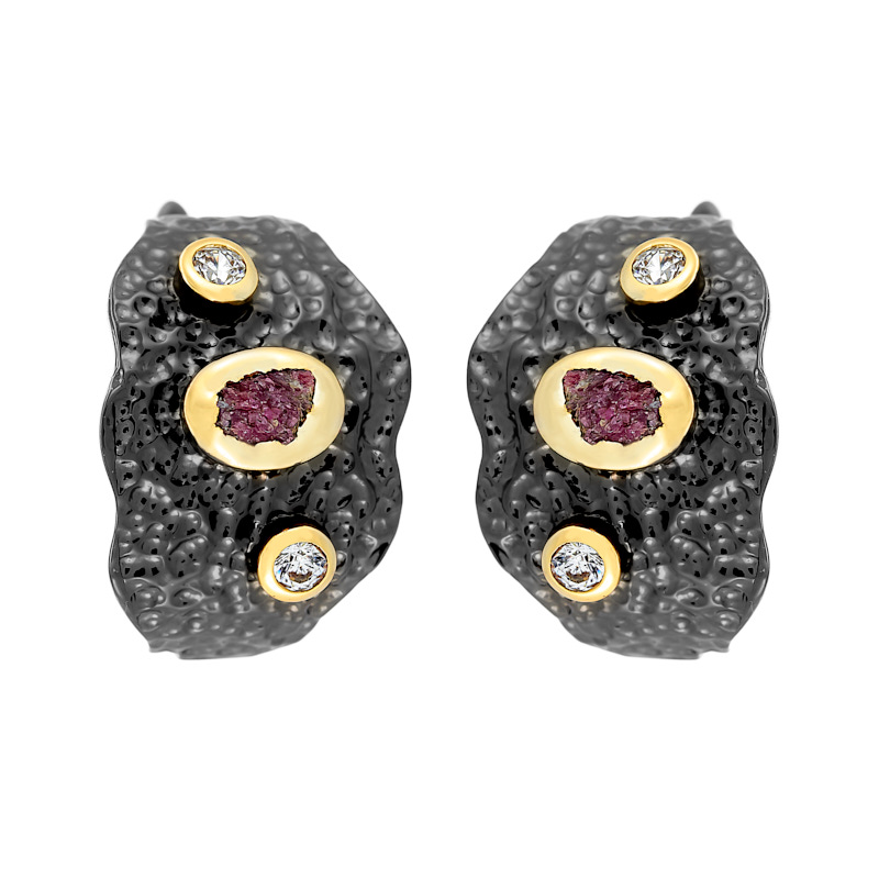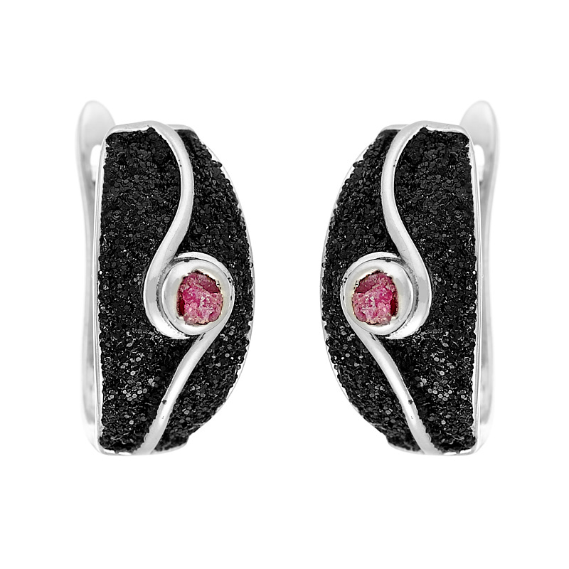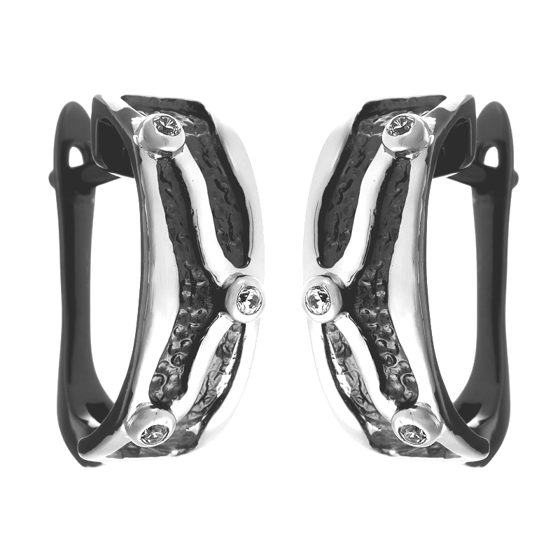 Серьги с английским замком из серебра с фианитами и цоизитами
