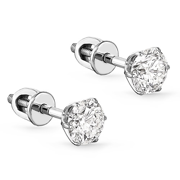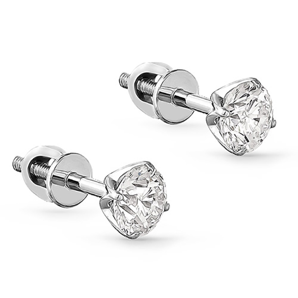 Серьги детские из белого золота с бриллиантами