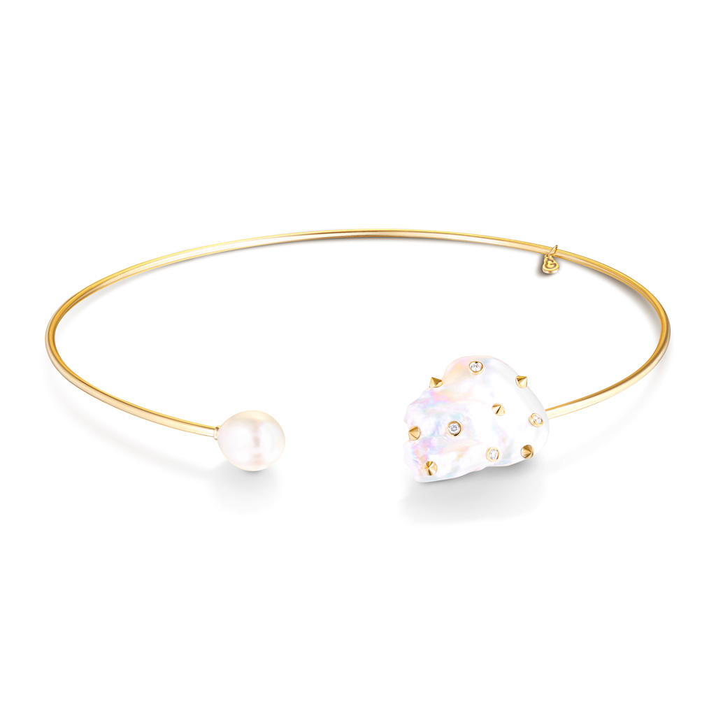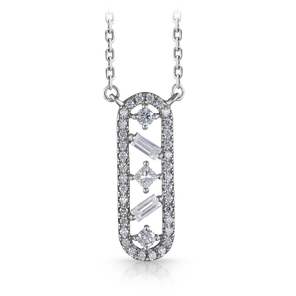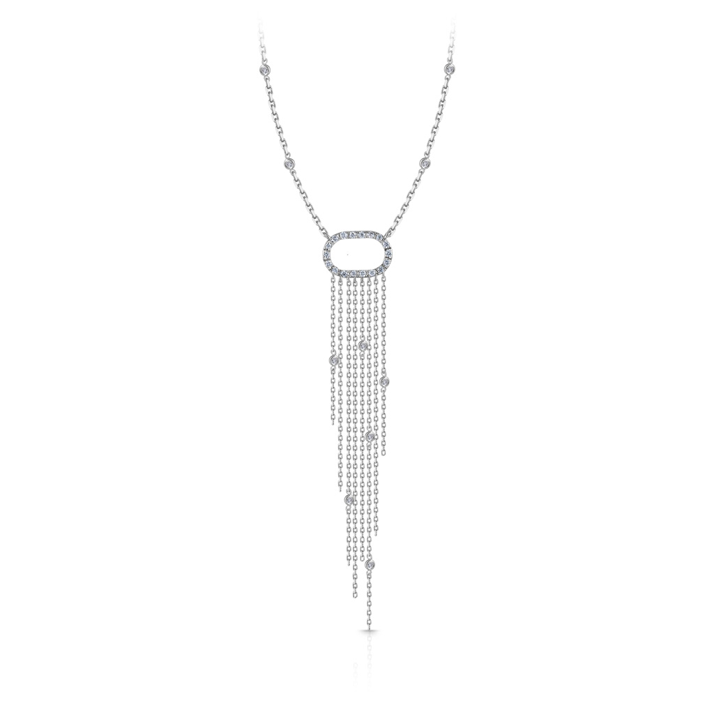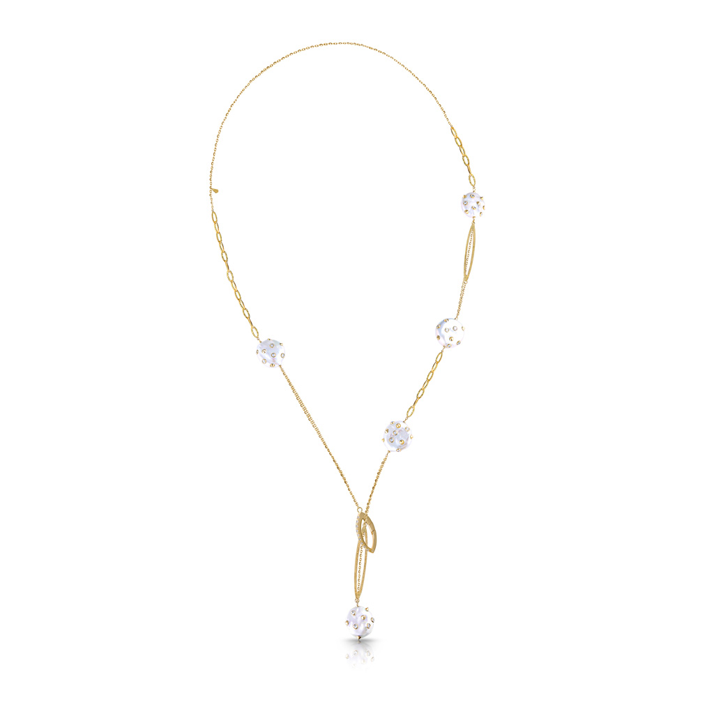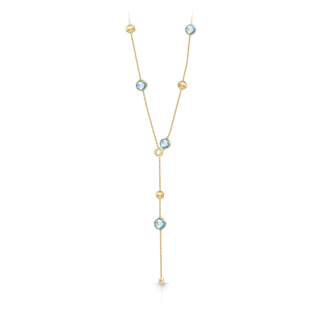 Колье из белого золота с бриллиантами и топазом, плетение якорное