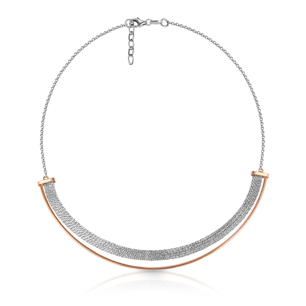 Колье из серебра с керамикой, фианитами