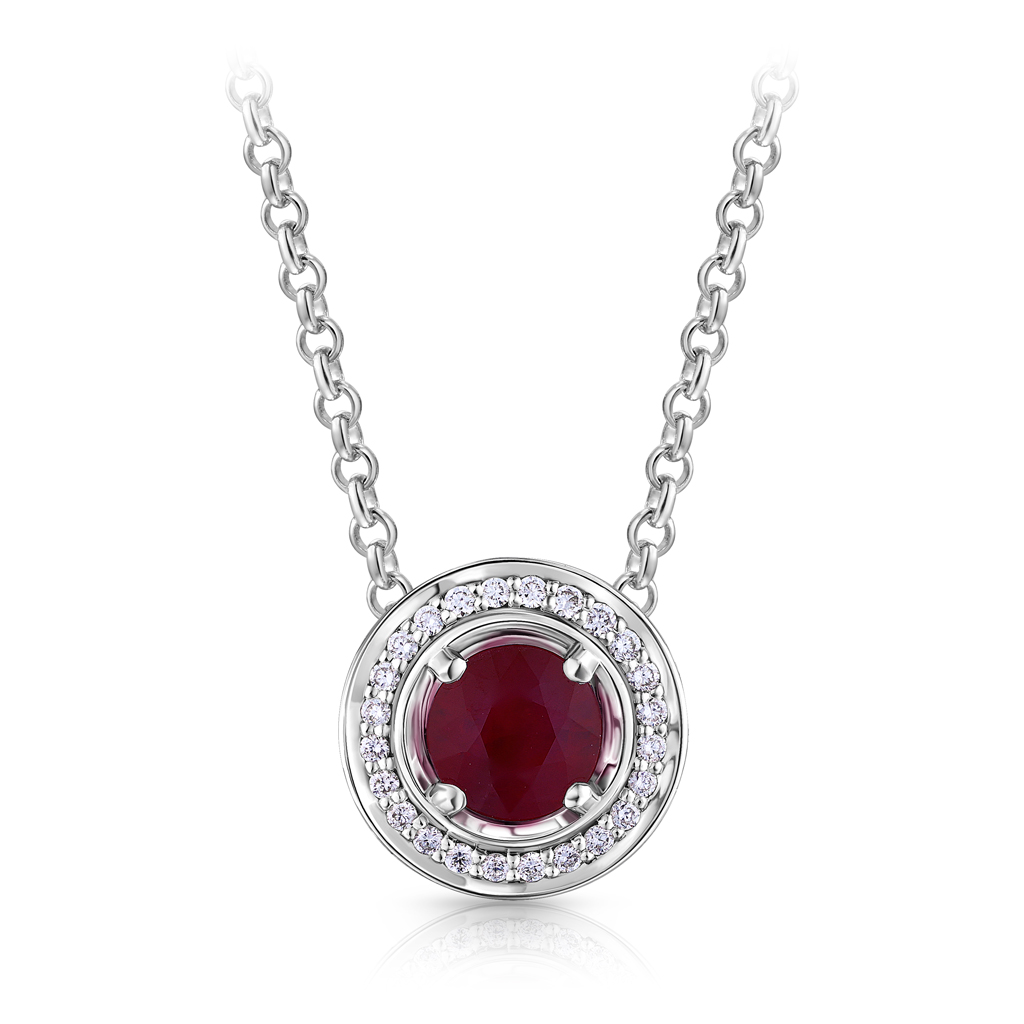 Колье из белого золота с бриллиантами, родолитом, плетение якорное