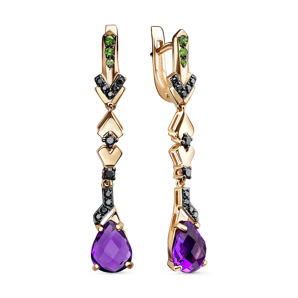 Серьги из красного золота с аметистами, бриллиантами, тсаворитами
