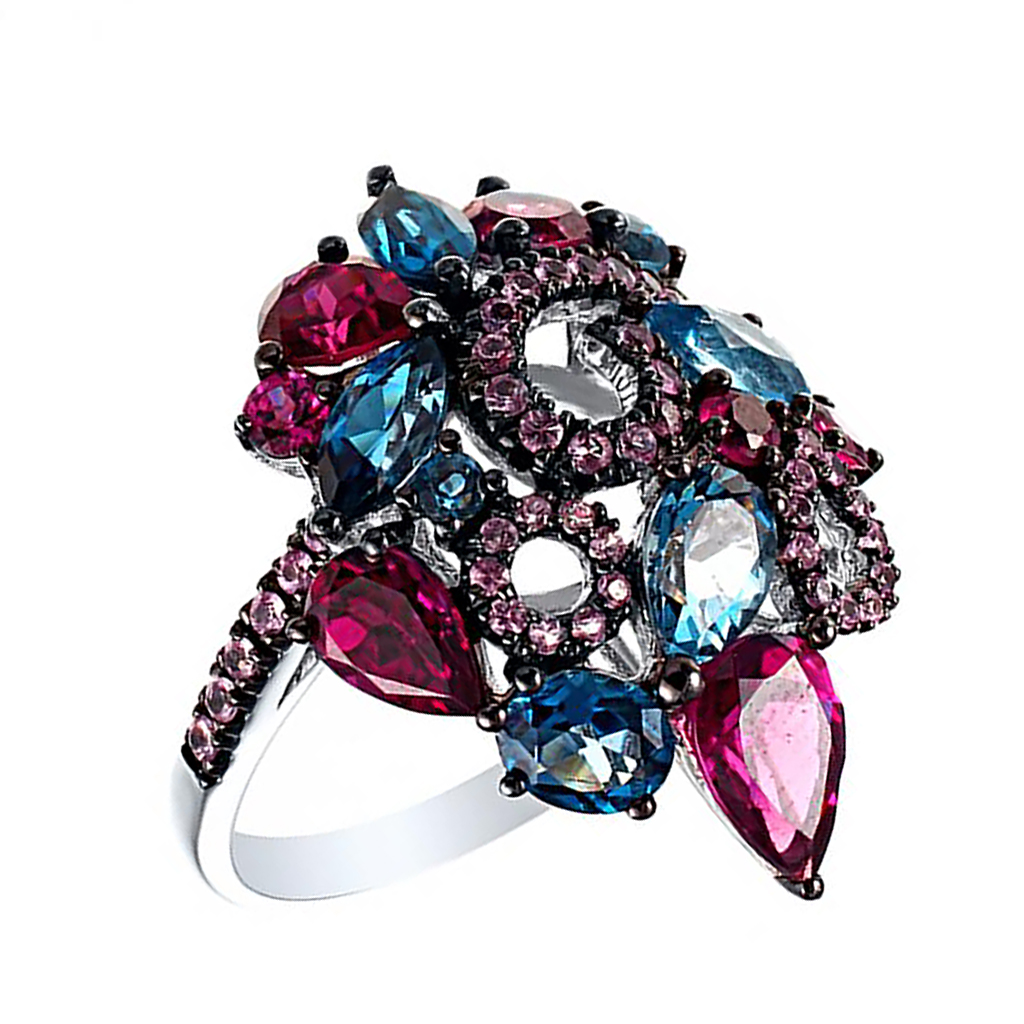 Кольцо из белого золота с бриллиантами, сапфирами, топазами, цветными