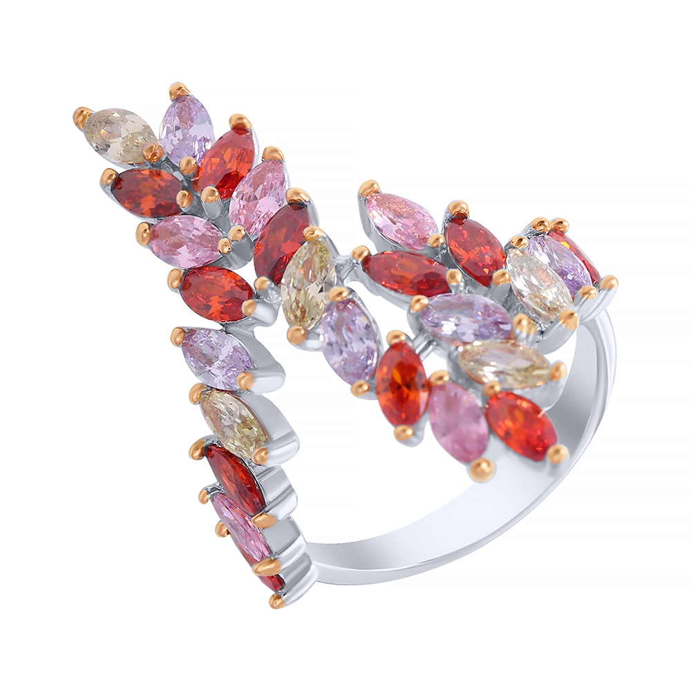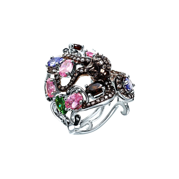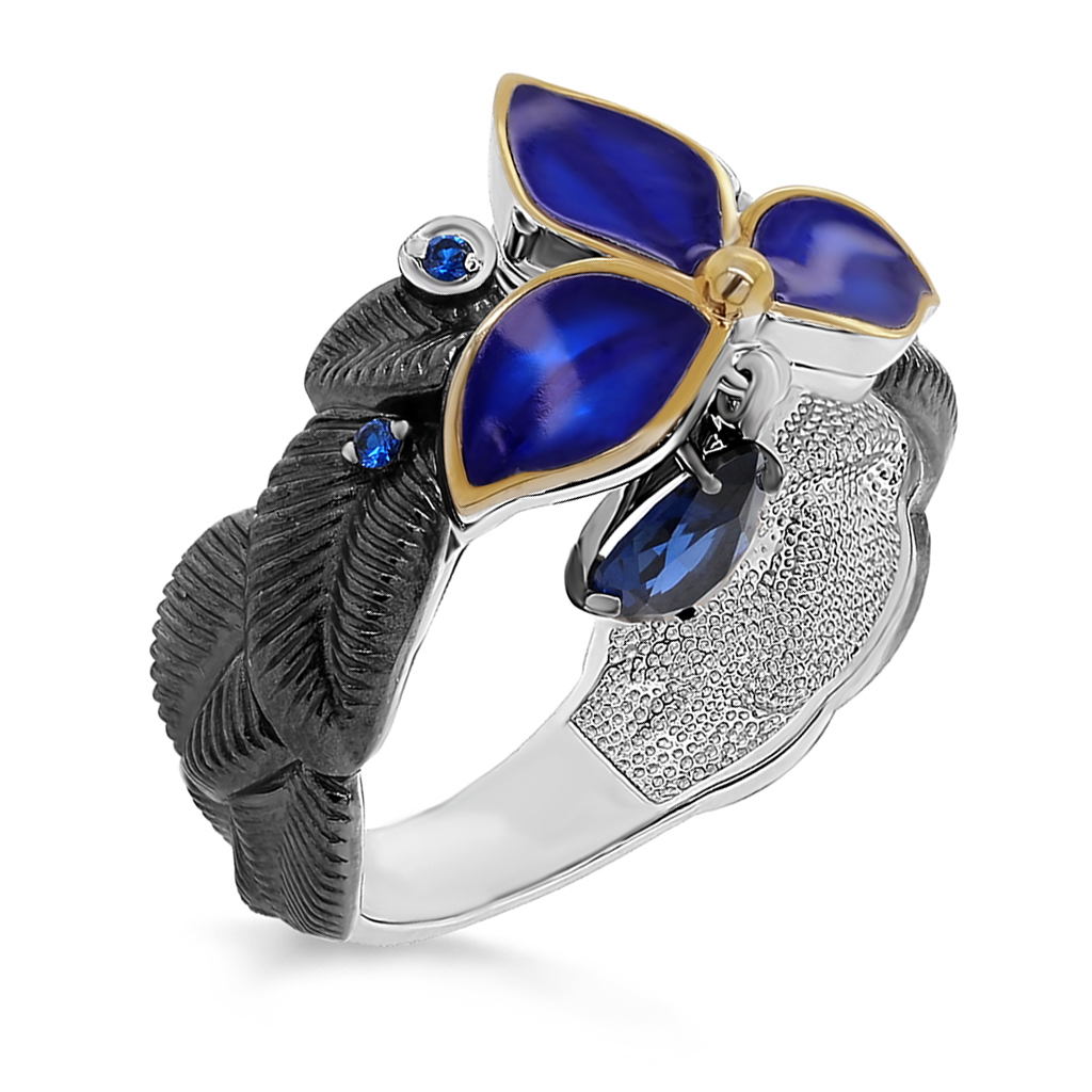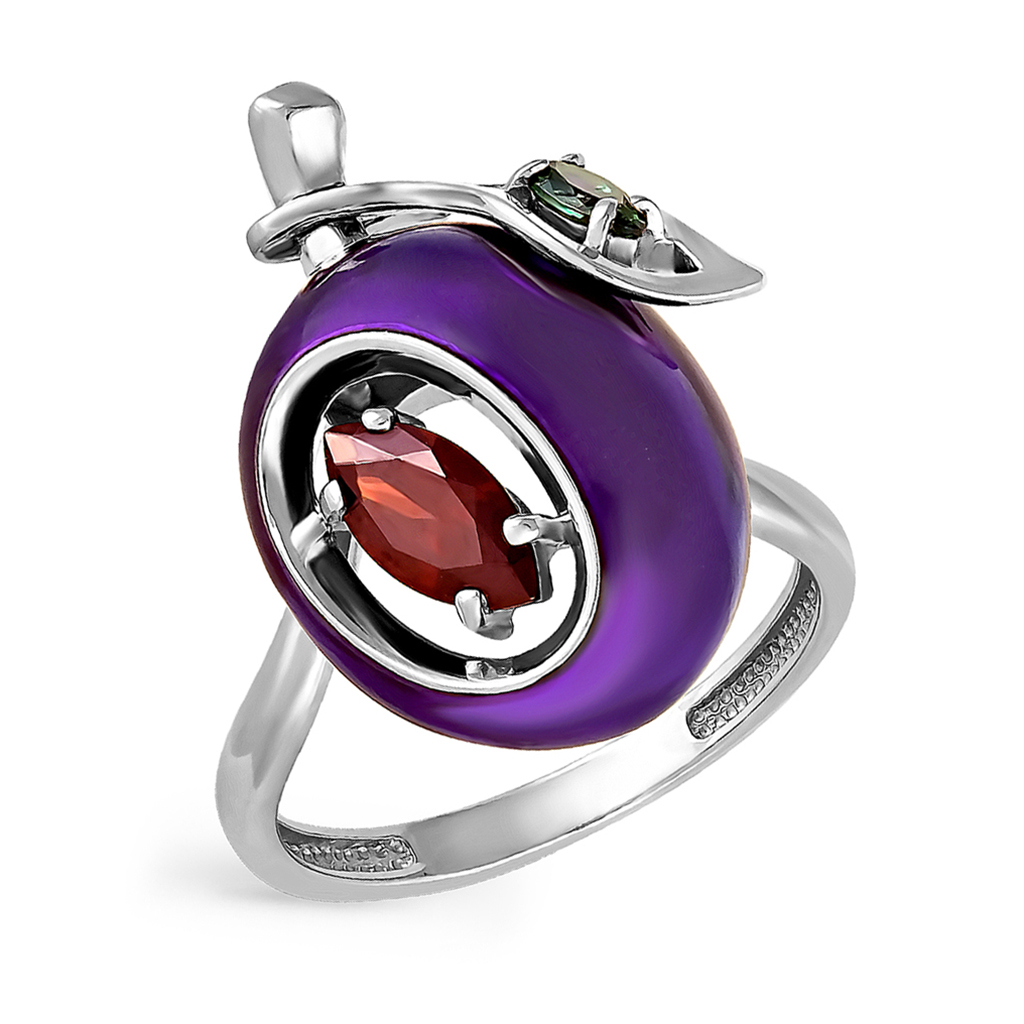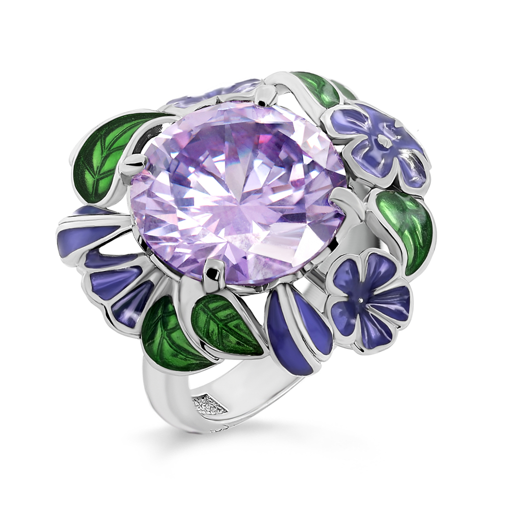 Кольцо из серебра с хризолитами и фианитами и эмалью